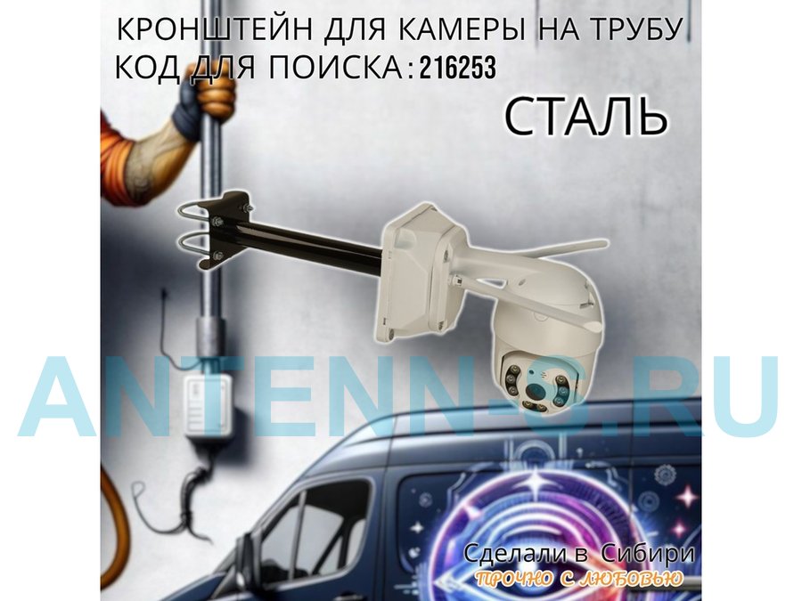- Позволяет закрепить камеру на столбе забора, мачте, трубе, настенном кронштейне, коньковом антенном кронштейне.