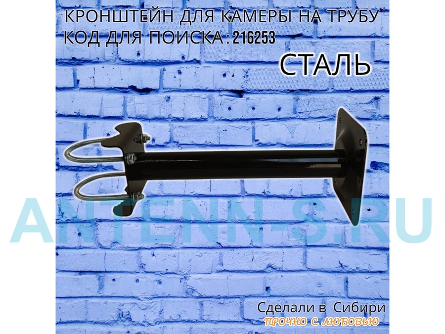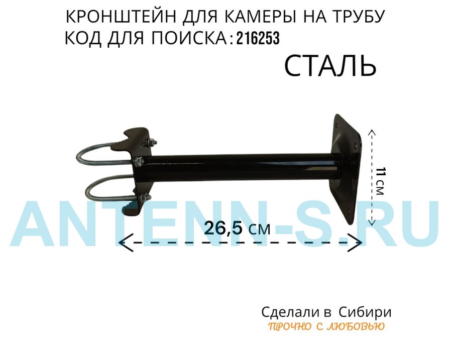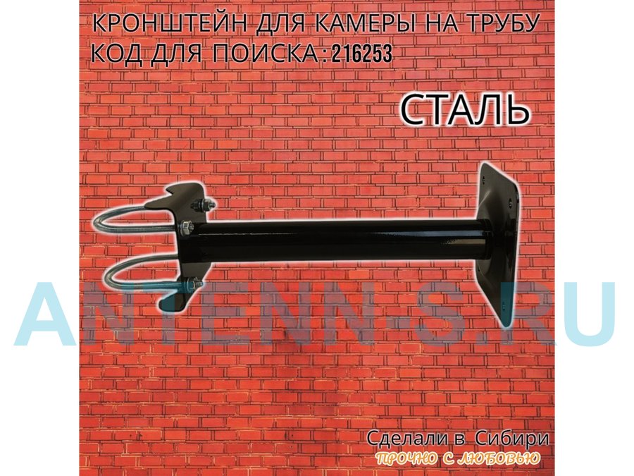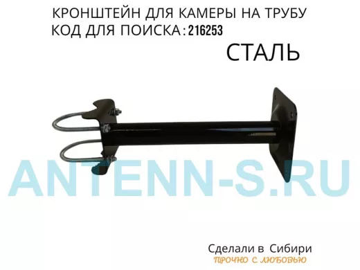 - Кронштейн предназначен для крепления поворотной или цилиндрической камеры на трубу.
