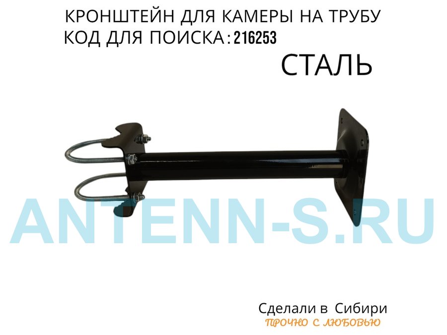 Кронштейн для видеокамеры на трубу 15...51мм вылет 25см под гермо-коробку "HIWOLL-216253" чёрный