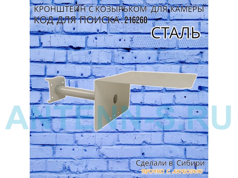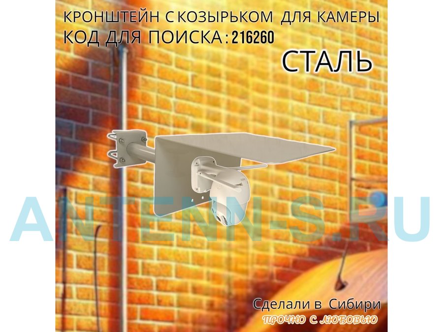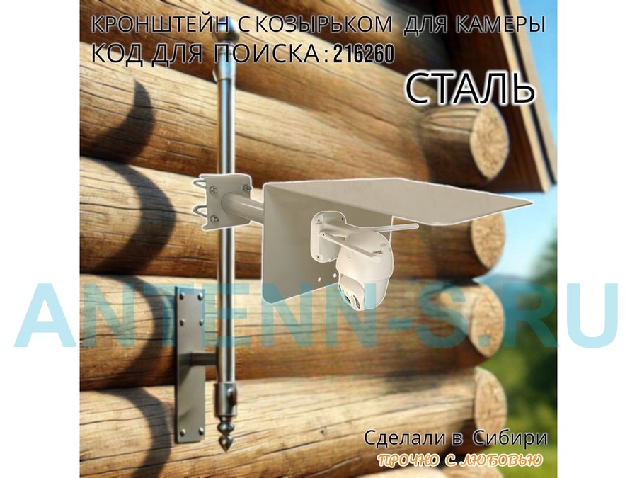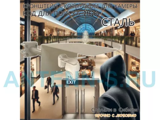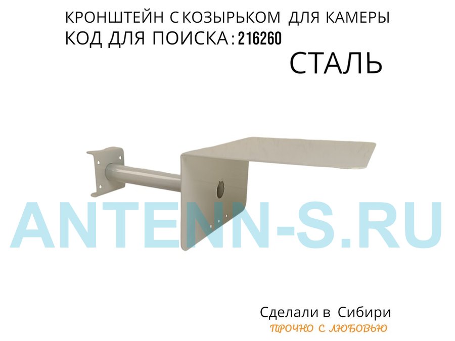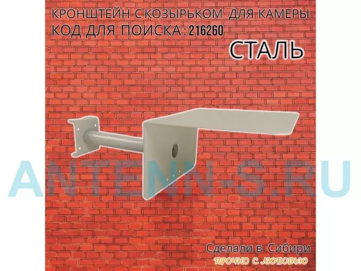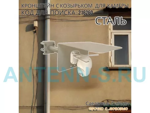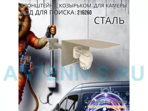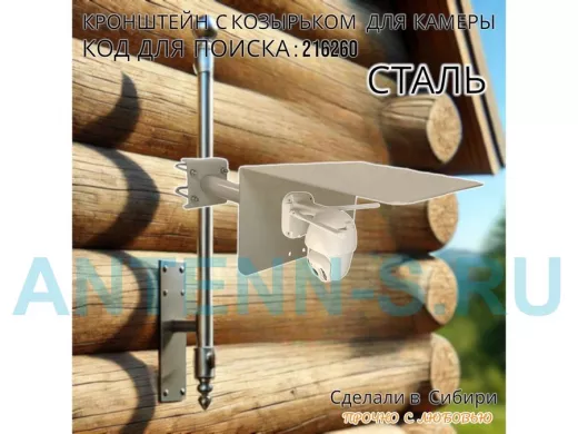 Кронштейн с козырьком для видеокамеры на трубу 15...51мм вылет 25см "HIWOLL-216260" серый