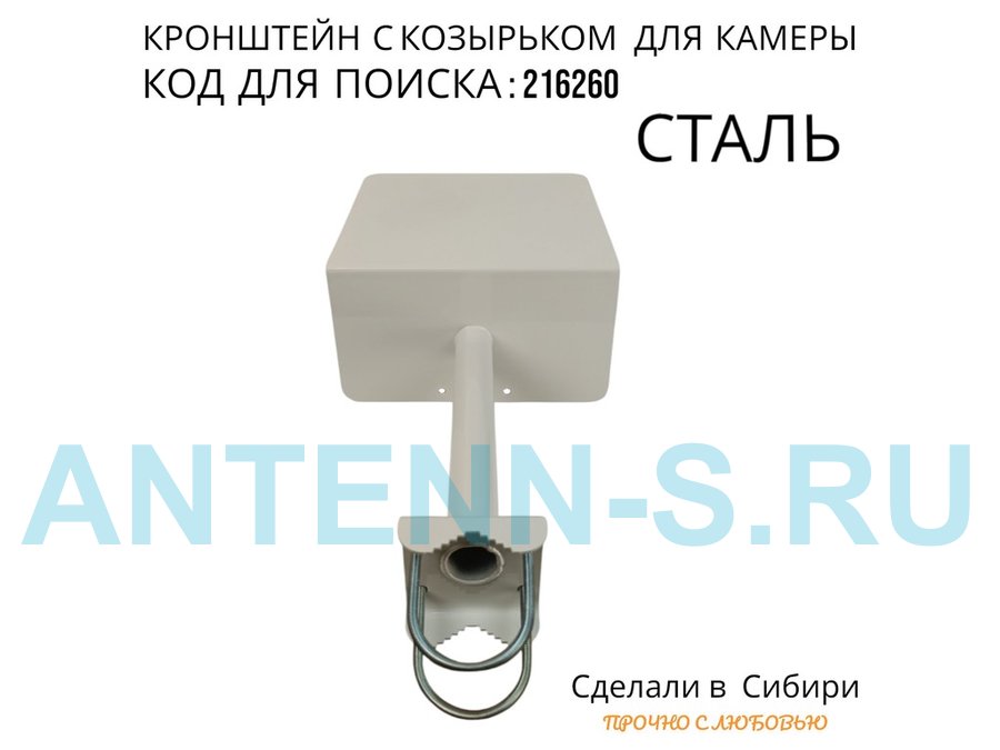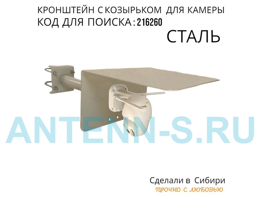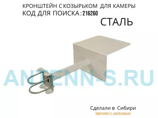 - Универсальный кронштейн с козырьком предназначен для крепления поворотной или цилиндрической камеры и прожектора на трубу.