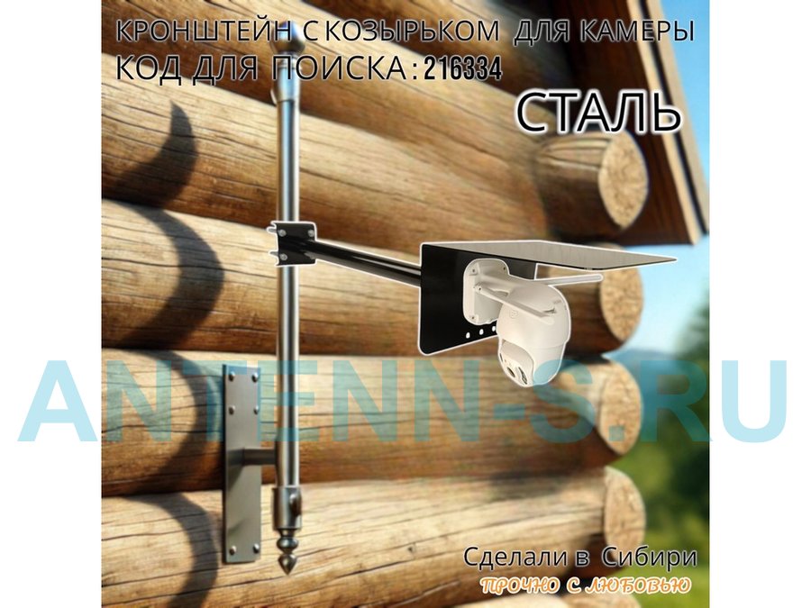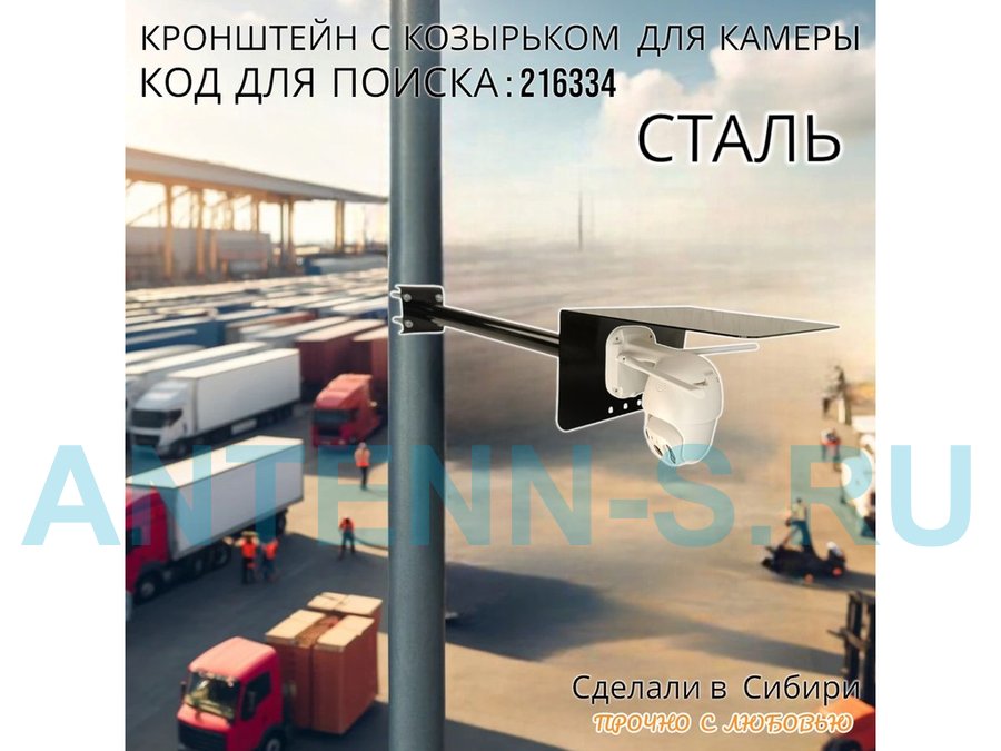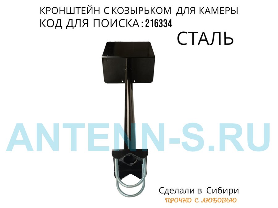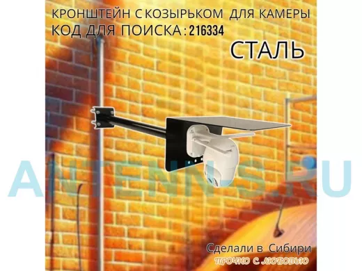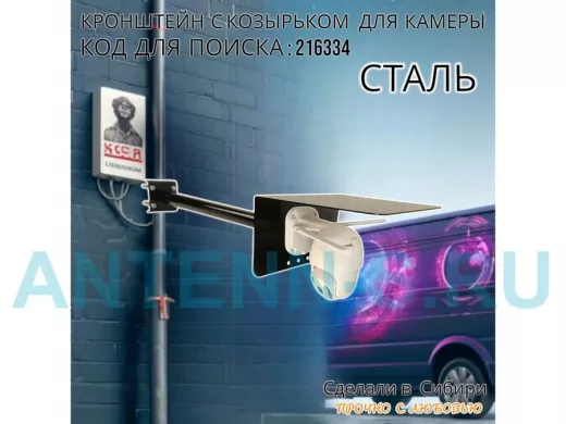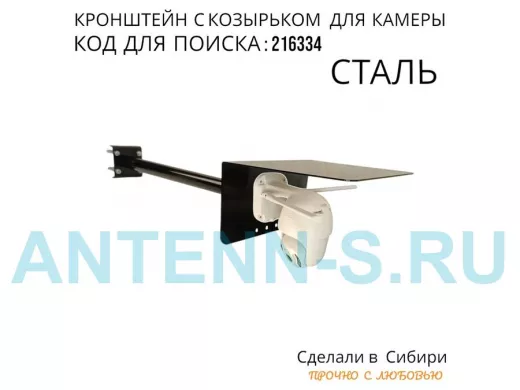 - Универсальный кронштейн с козырьком предназначен для крепления поворотной или цилиндрической камеры и прожектора на трубу.