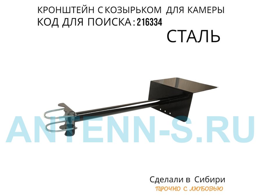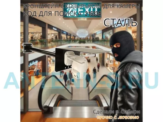 Кронштейн с козырьком для видеокамеры на трубу 15...51мм вылет 50см 24х22см "HIWOLL-216334" чёрный