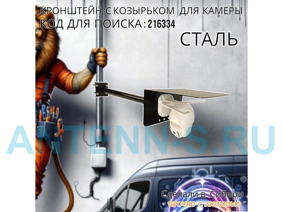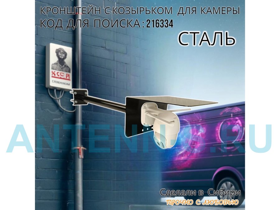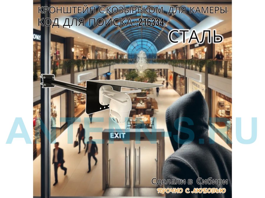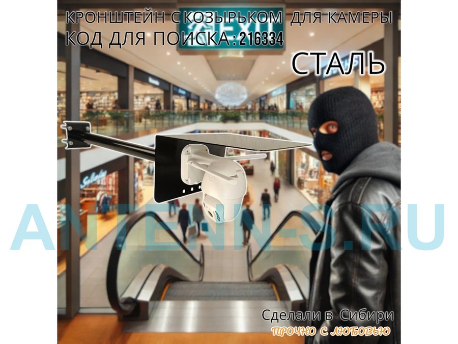 - Позволяет закрепить камеру на столбе забора, мачте, трубе, настенный кронштейне, коньковом антенном кронштейне. Вылет 50см.