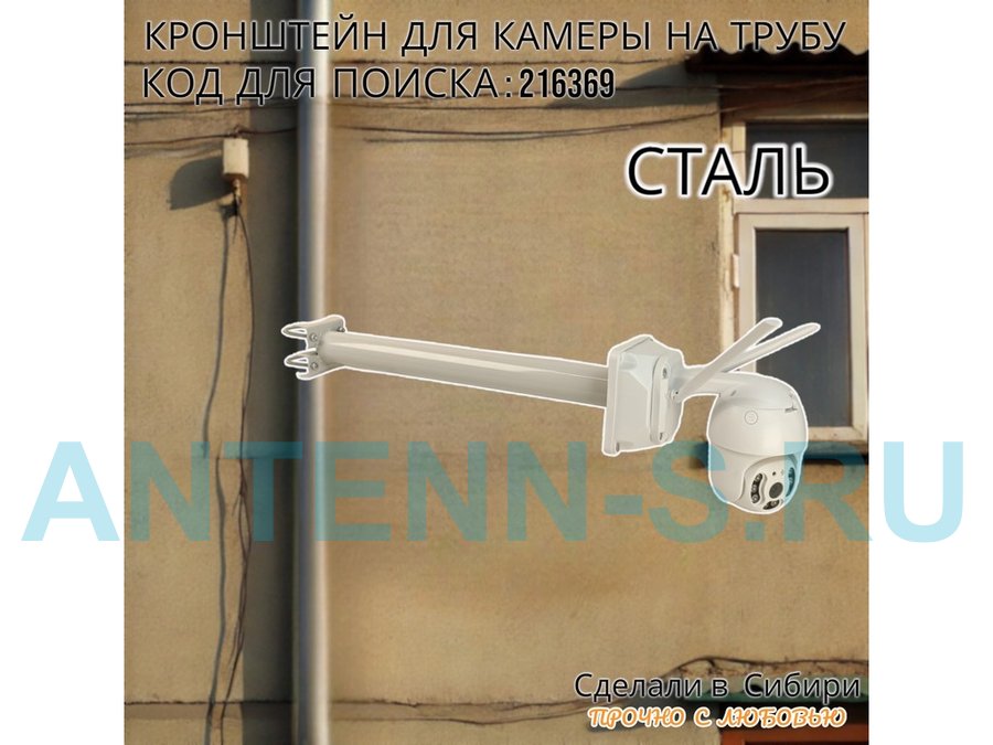 . Для видеокамер. Кронштейны на трубу от 15 до 51мм под гермокоробку, диаметр 51мм. Прямой.