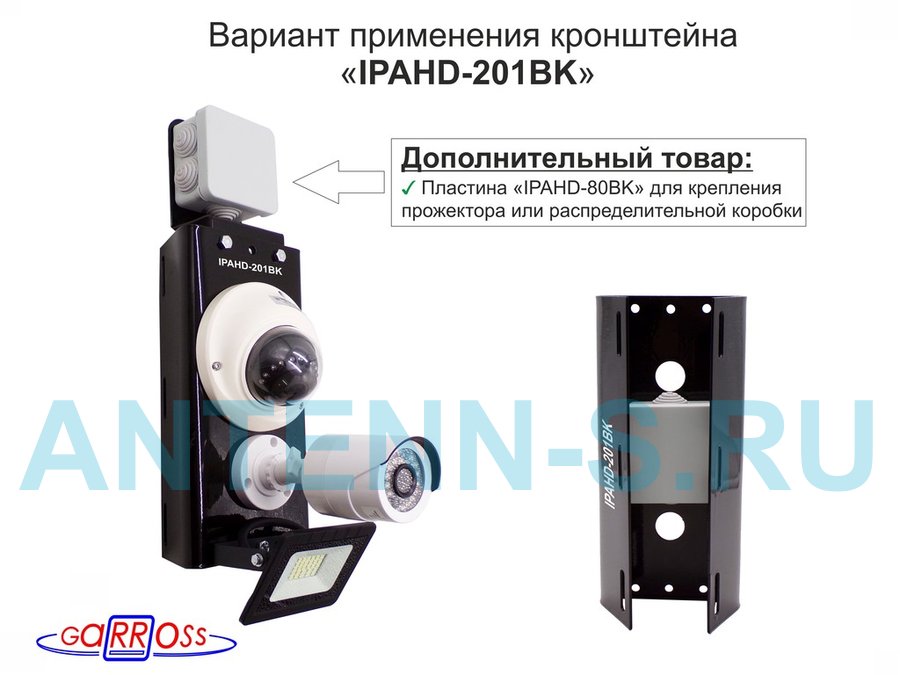 Кронштейн для двух камер и прожектора на столб чёрный "IPAHD-201BK-89767" под СИП-ленту, вылет 80мм