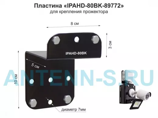 Пластина для прожектора вылет 6см "IPAHD-80-89772" чёрная, на кронштейны серии IPAHD, HIWOLL
