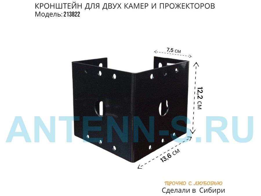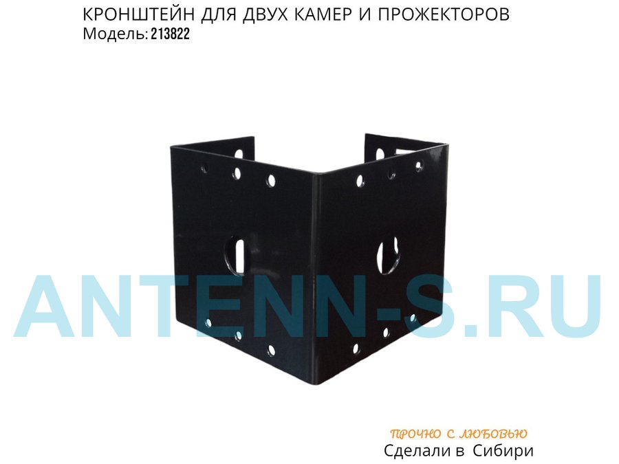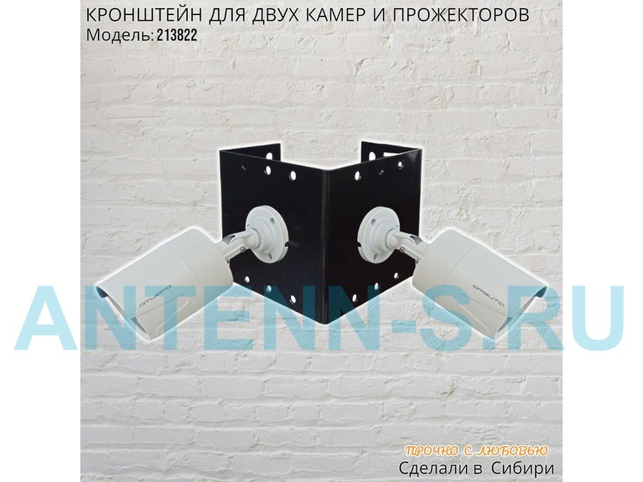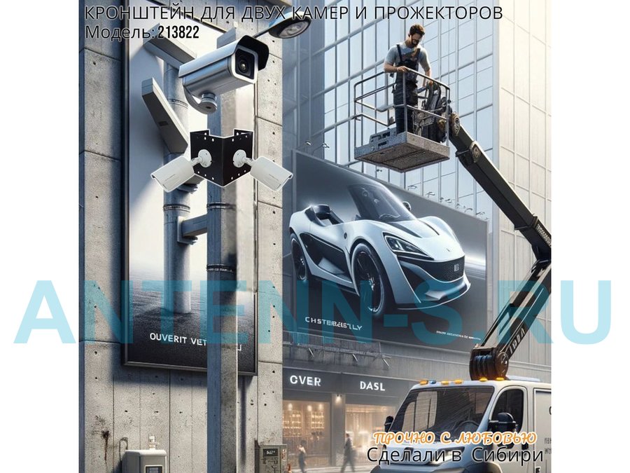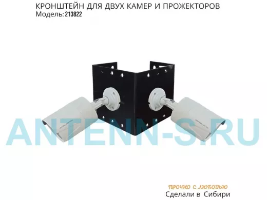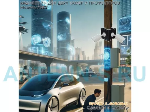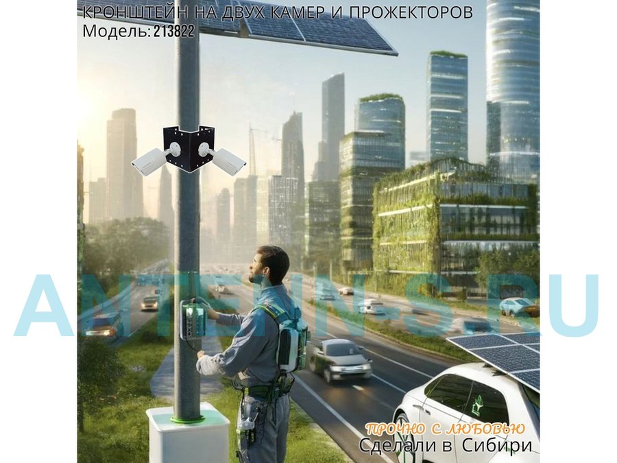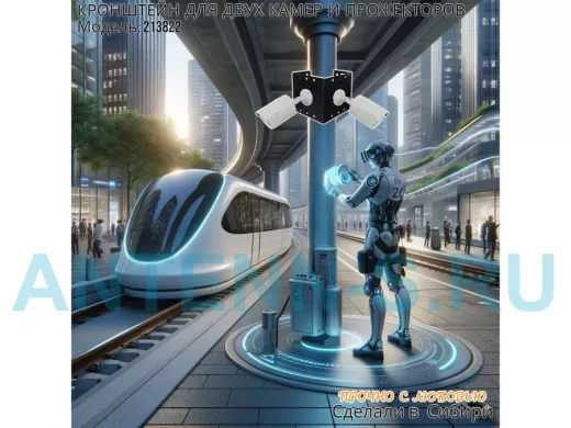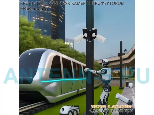 - Кронштейн для двух камер и прожектора, крепится при помощи СИП ленты монтажной на квадратный или круглый столб.