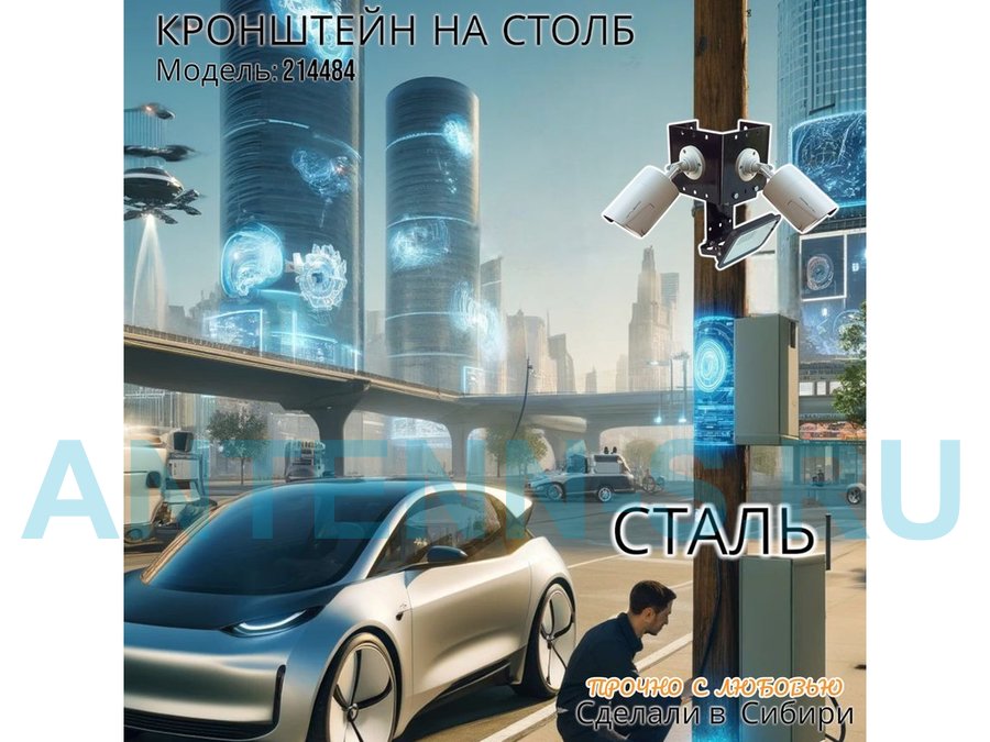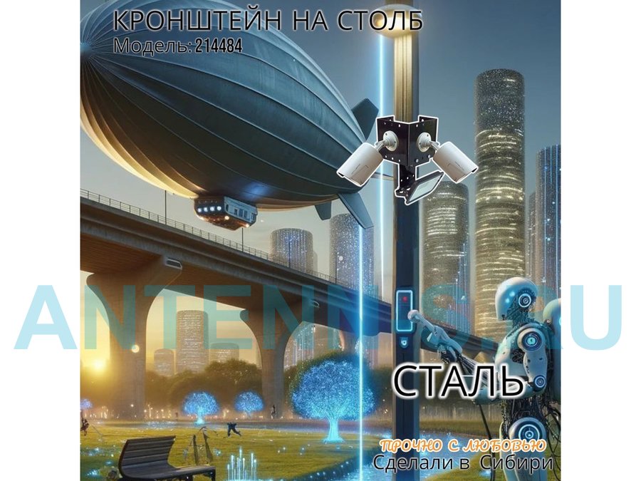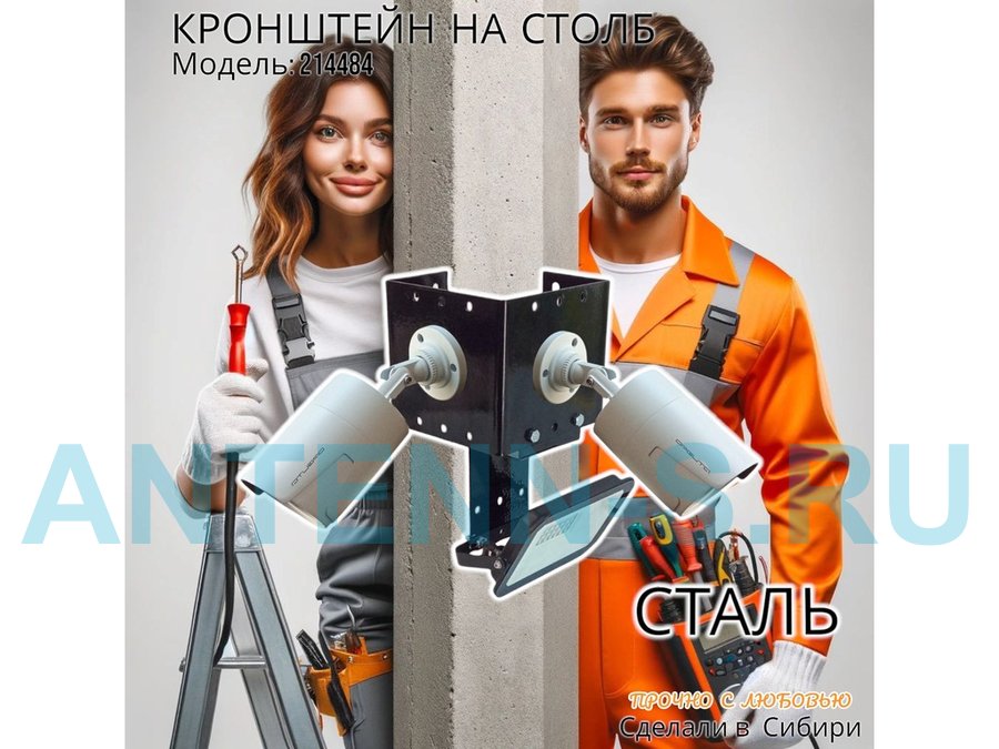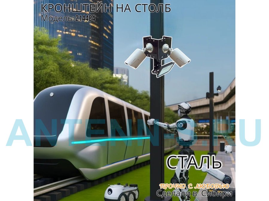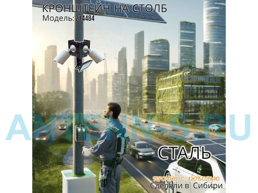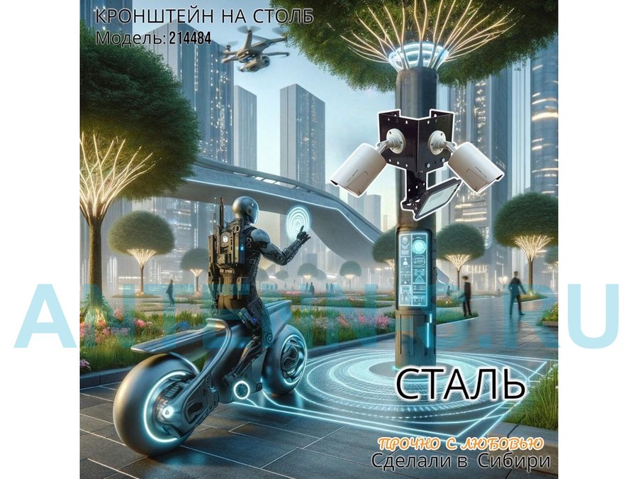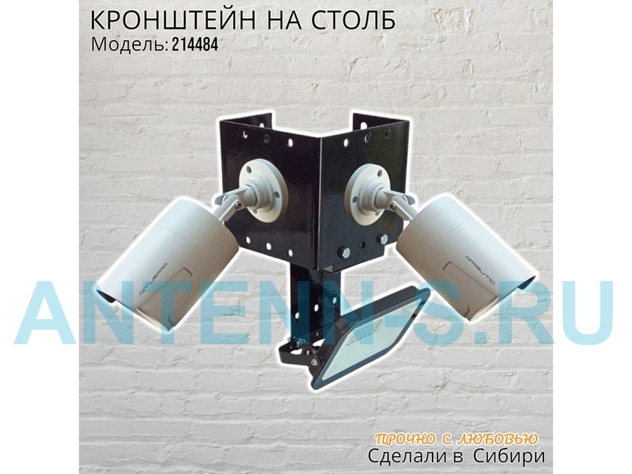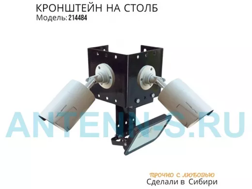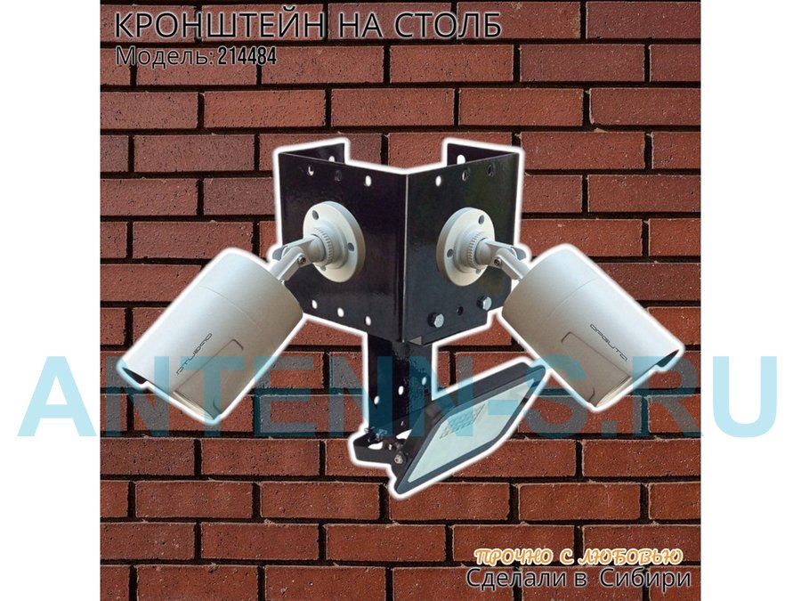 - Кронштейн для двух камер и прожектора, крепится при помощи СИП ленты монтажной на квадратный или круглый столб.