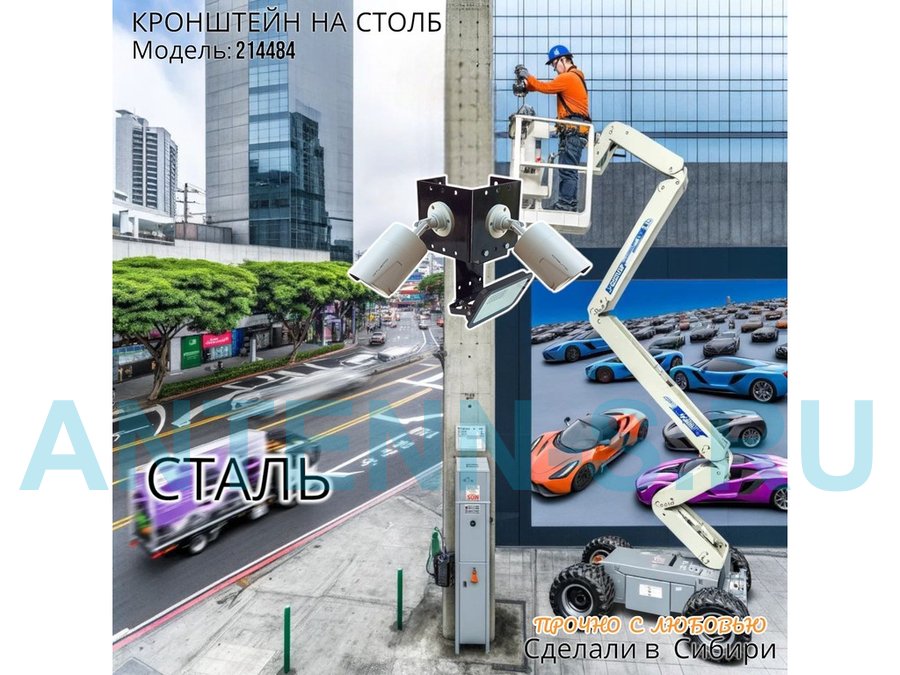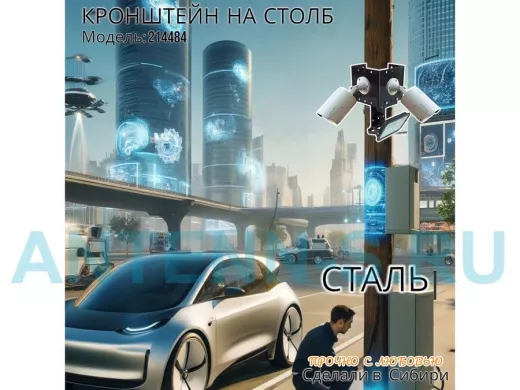 - Кронштейн позволяет быстро зафиксировать камеры видеонаблюдения или прожектор на столбе, не сверля его.