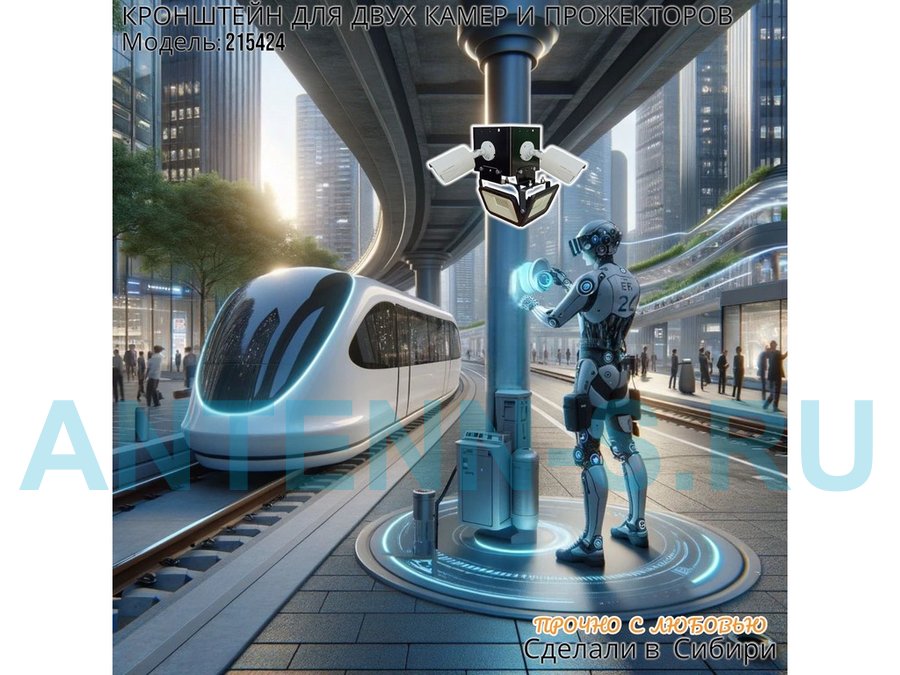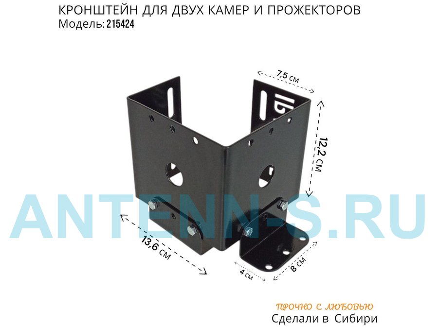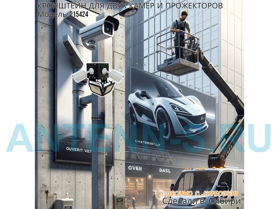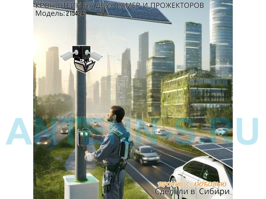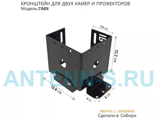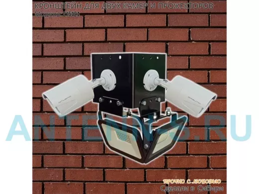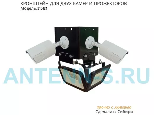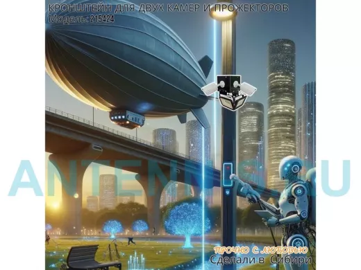- Кронштейн для двух камер и прожектора, крепится при помощи СИП ленты монтажной на квадратный или круглый столб.