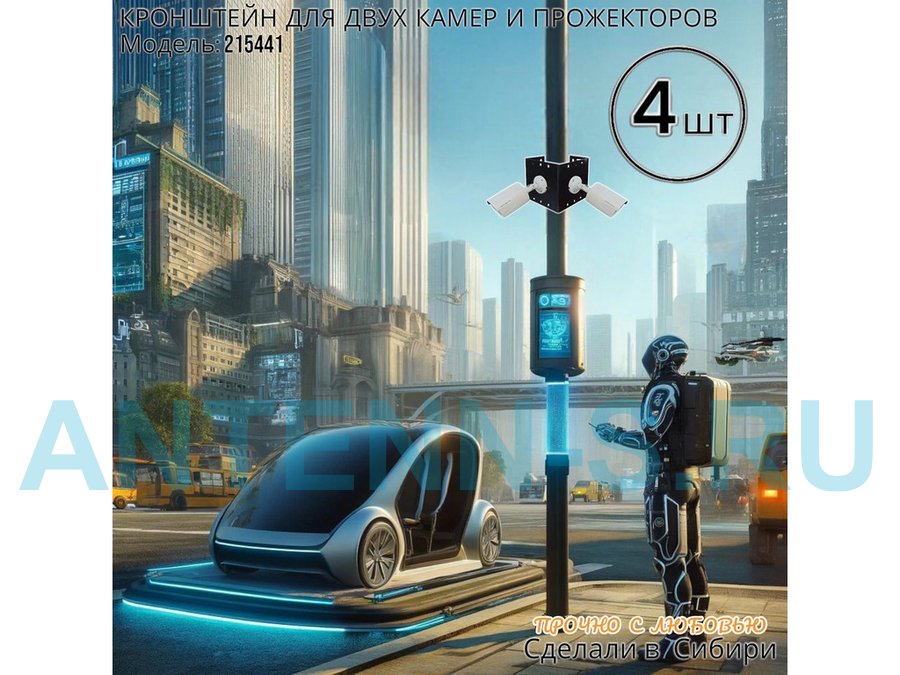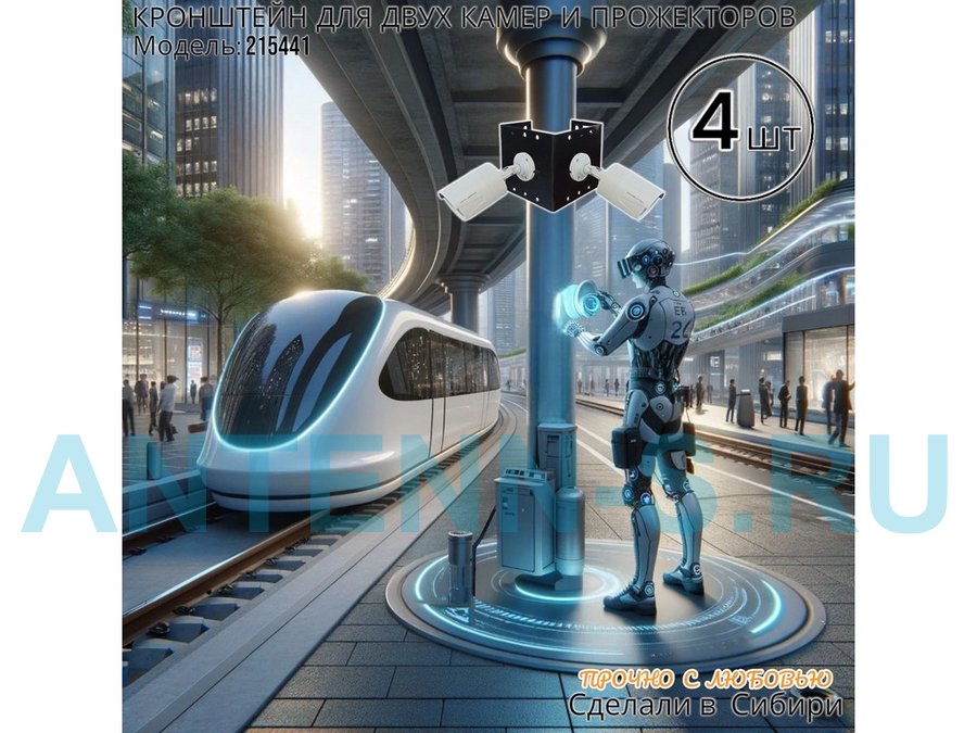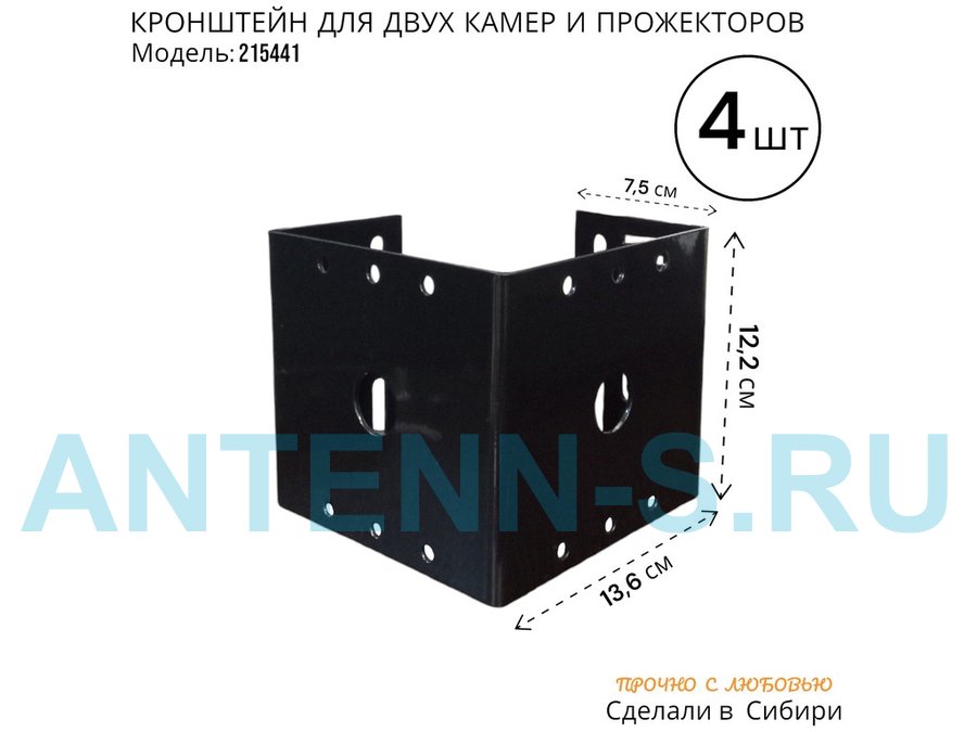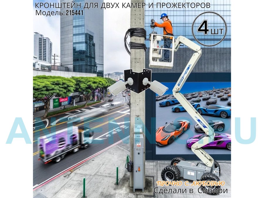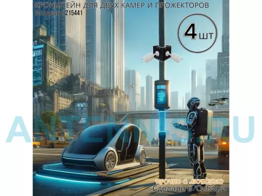 - Кронштейн для двух камер и прожектора, крепится при помощи СИП ленты монтажной на квадратный или круглый столб.