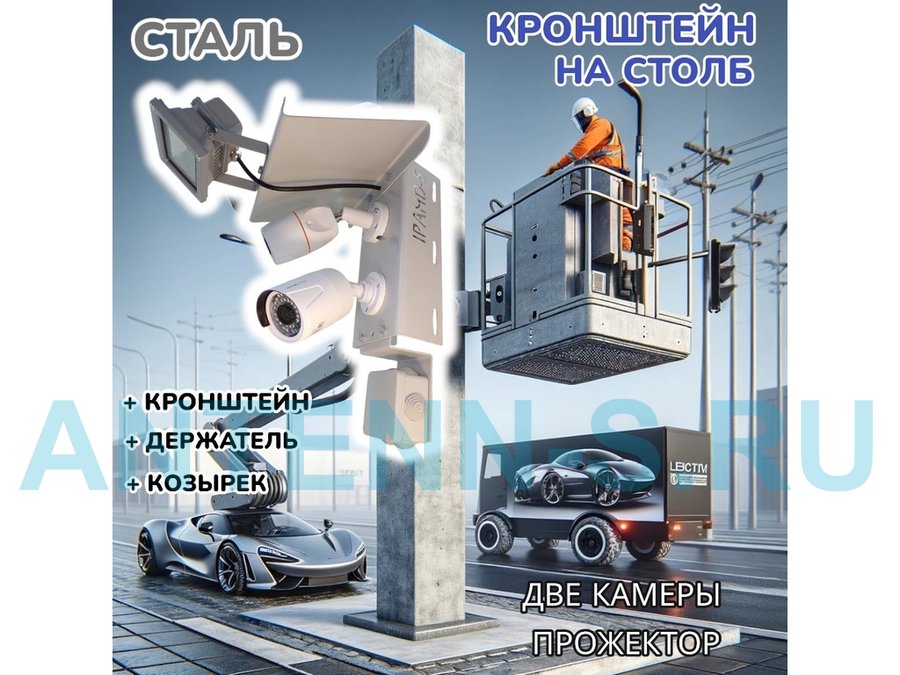 В корзину Купить в 1 клик Кронштейн для двух камер и прожектора на столб с козырьком и пластиной серый "IPAHD-5-214548"