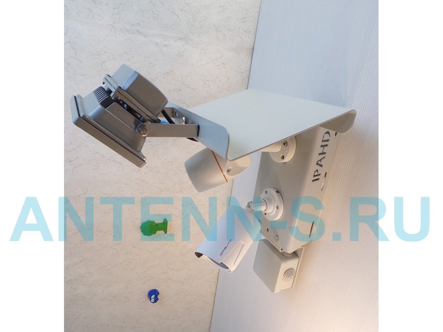 - Кронштейн укомплектован козырьком и площадкой для монтажной коробки