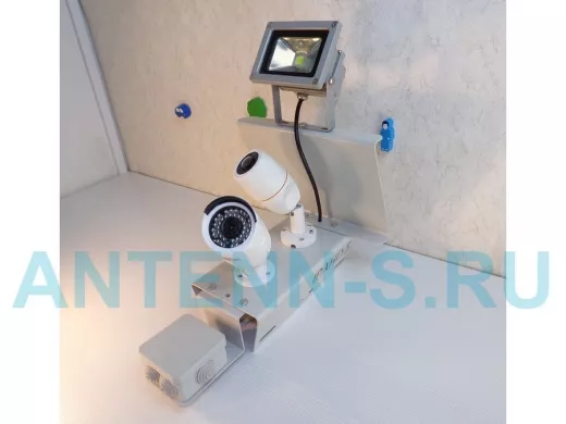 - Допускает установку двух камер наблюдения и прожектора.