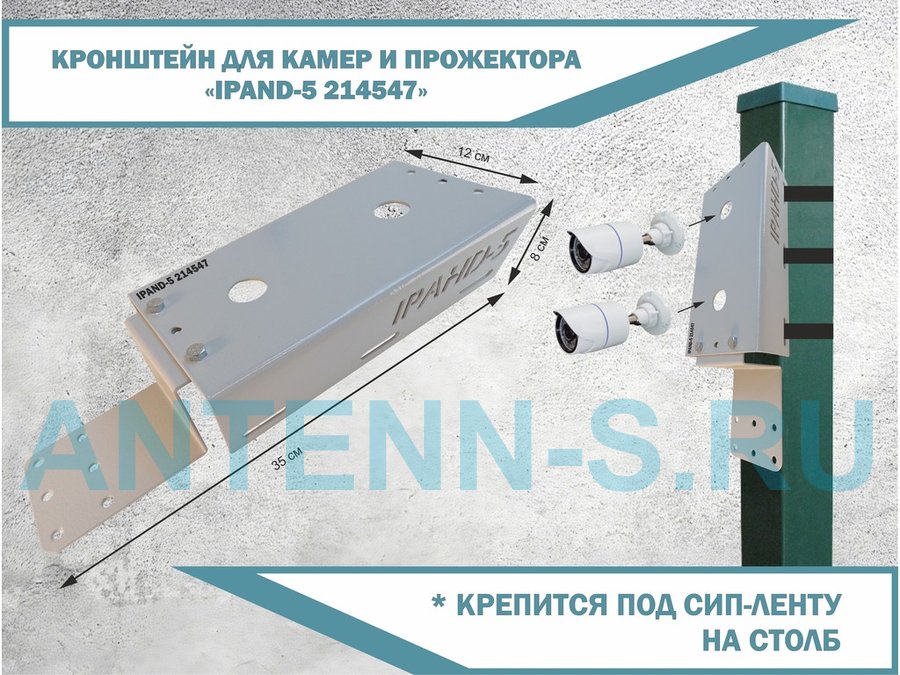 В корзину Купить в 1 клик Кронштейн для двух камер прожекторов с пластиной для коробки "IPAHD-5-214547" серый, под СИП-ленту