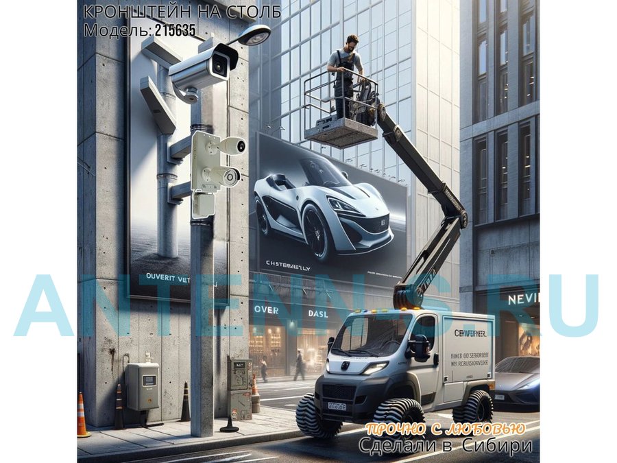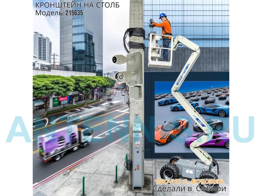 - Кронштейн крепится при помощи монтажной СИП ленты на квадратный железобетонный или круглый столб.