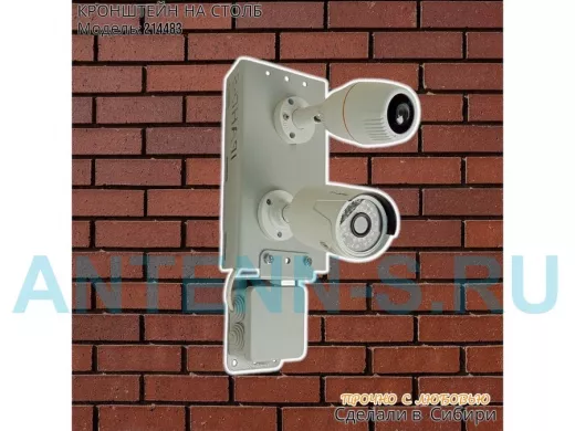 Кронштейн с пластиной для монтажной коробки для крепления двух камер и прожектора на столб при помощи СИП - ленты или хомутов