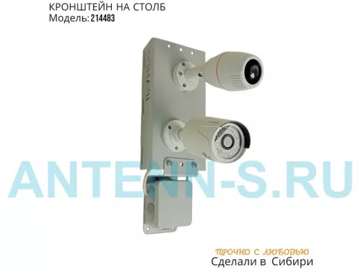 Кронштейн для двух камер и прожектора на столб с пластиной для гермокоробки серый IPAHD-5-215635