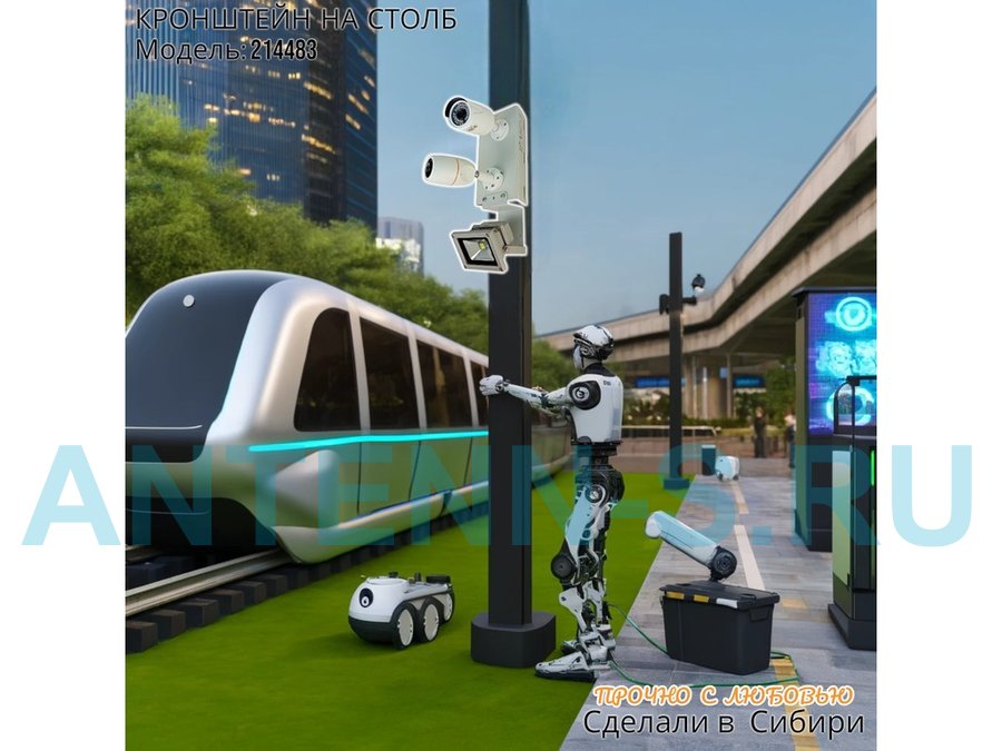 В корзину Купить в 1 клик Кронштейн для двух камер на столб с пластиной для прожектора "IPAHD-5-214483" прочная сталь, серый