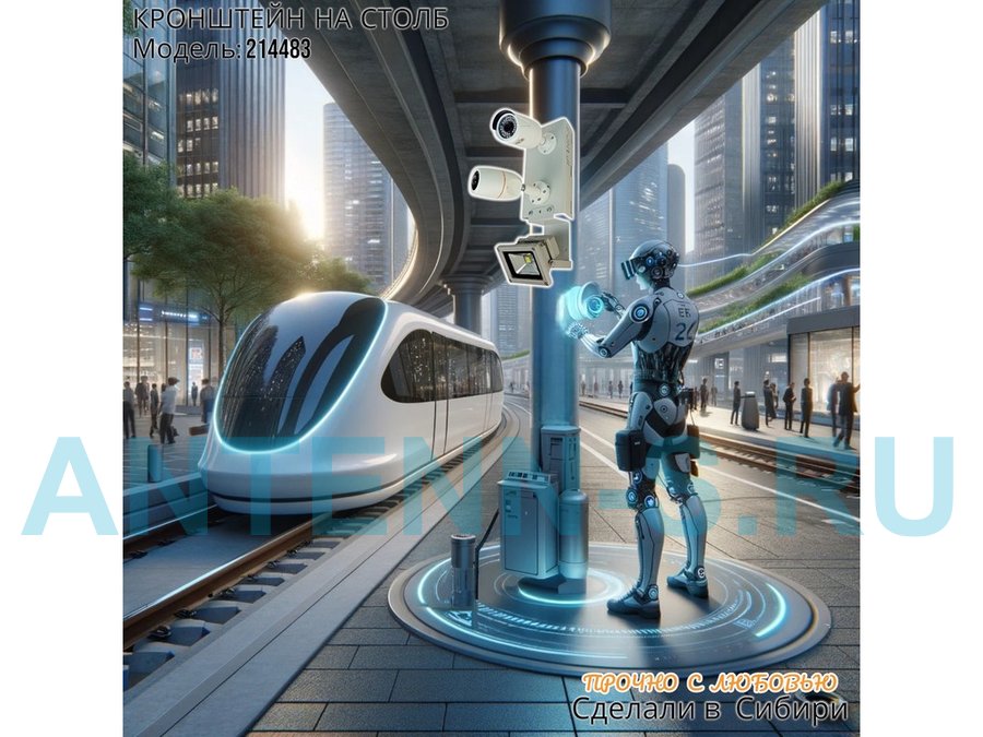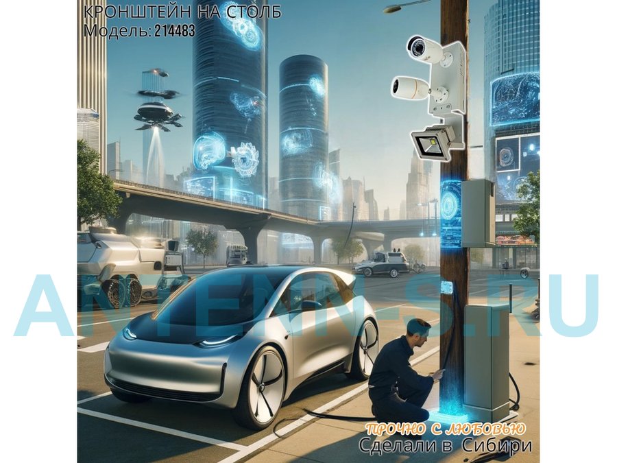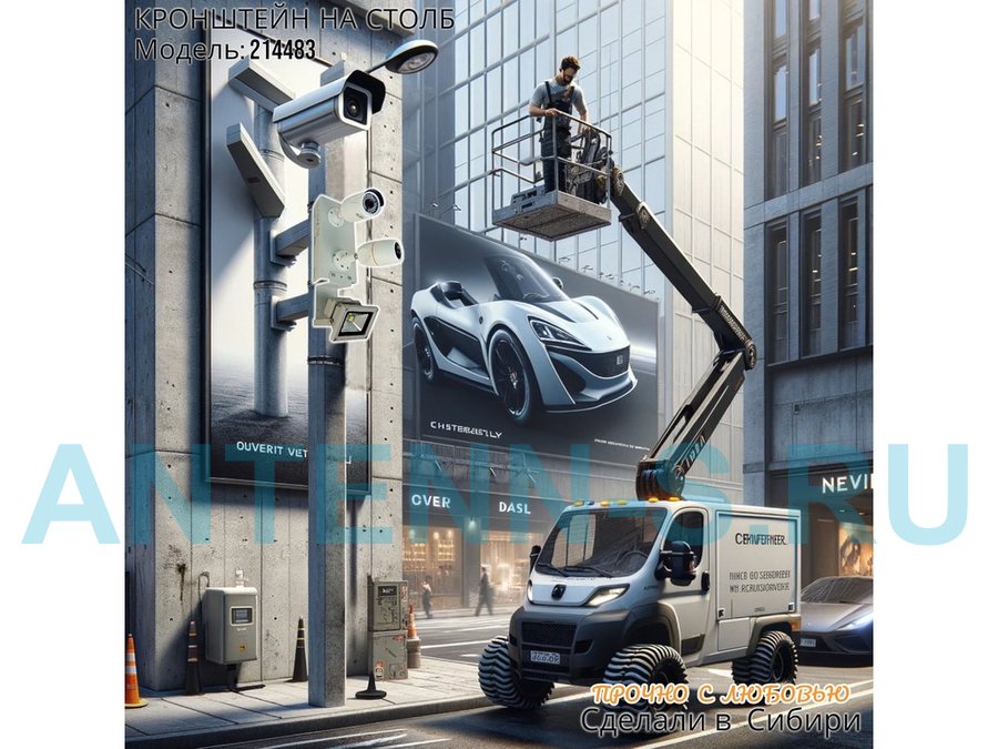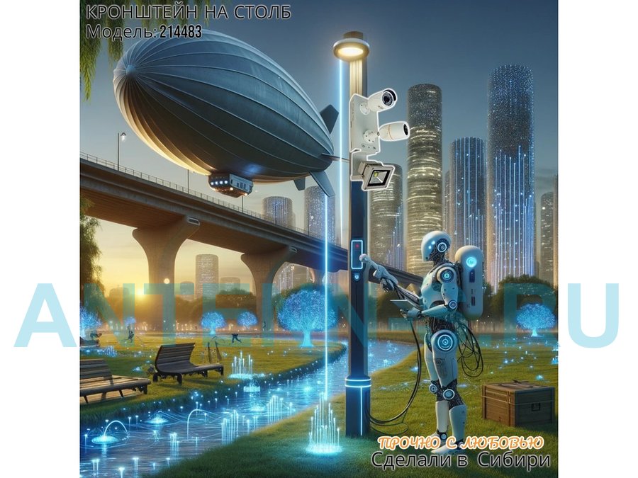- Кронштейн крепится при помощи монтажной СИП ленты на квадратный железобетонный или круглый столб.