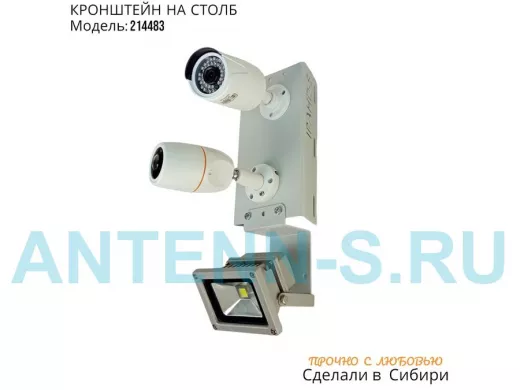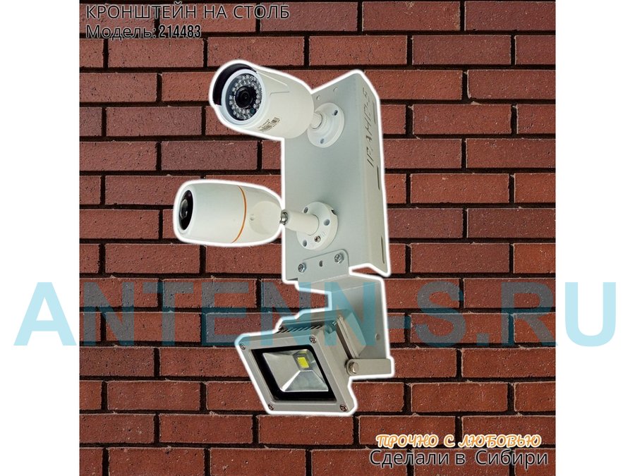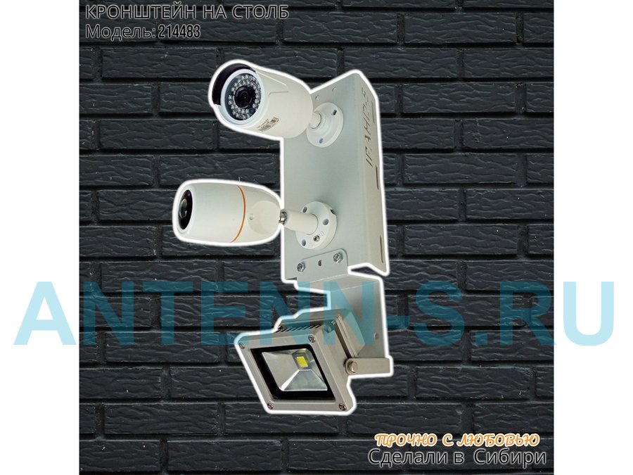 Кронштейн для двух камер на столб с пластиной для прожектора "IPAHD-5-214483" прочная сталь, серый
