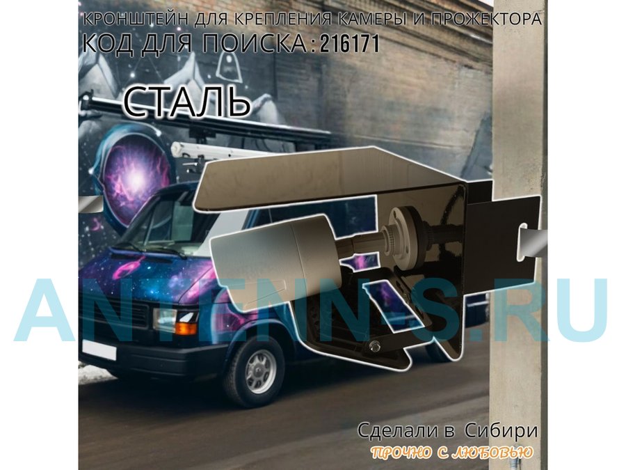 Кронштейн для камеры и прожектора на столб с козырьком "IPAHD-216171" черный,под СИП-ленту или хомут