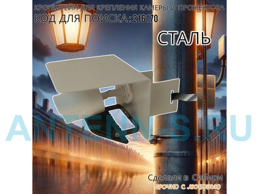 - Кронштейн позволяет быстро зафиксировать прожектор или камеру наблюдения на столб.