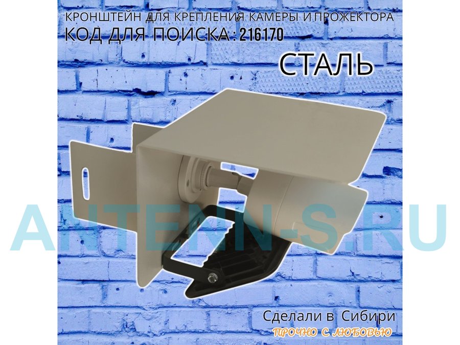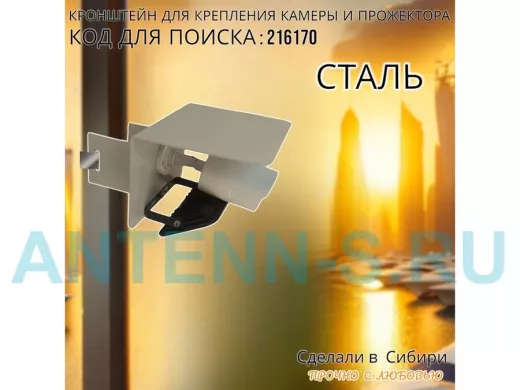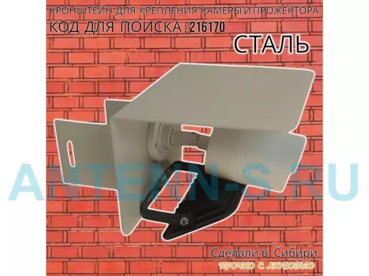 - Универсальный кронштейн с козырьком предназначен для крепления прожектора или камеры на столб.
