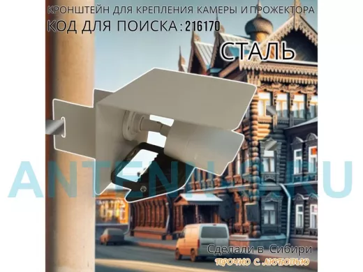 Кронштейн для камеры и прожектора на столб с козырьком "IPAHD-216170" серый, под СИП-ленту или хомут