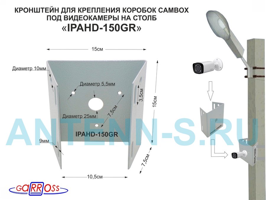 В корзину Купить в 1 клик Кронштейн на столб для крепления гермо-коробок CAMBOX и видеокамер "IPAHD-150GR-129486" серый