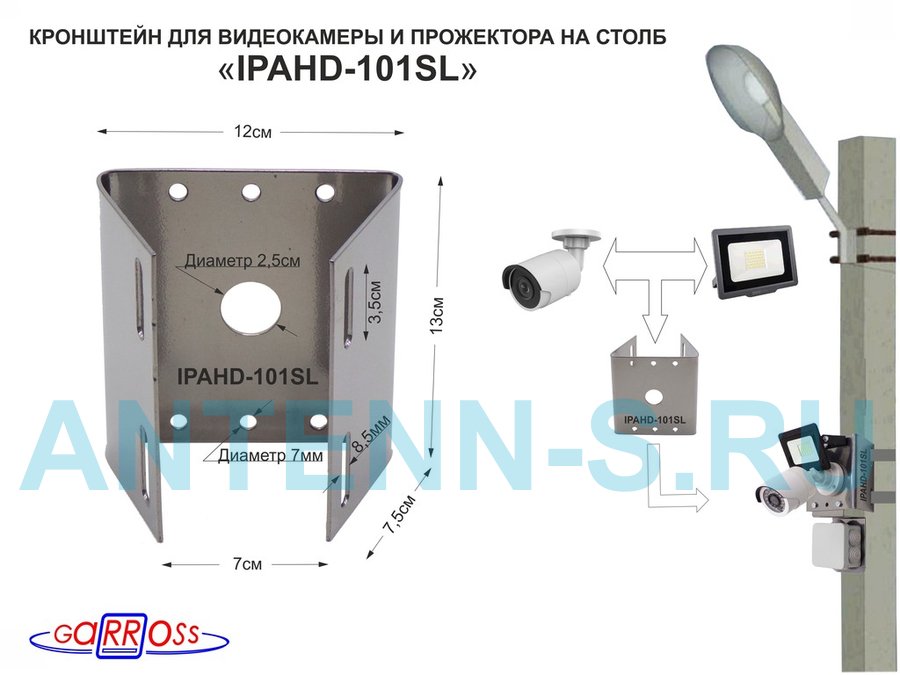 . Для видеокамер. Кронштейны на столб одноместные "IPAHD-101". С отверстием 25 и 7мм.