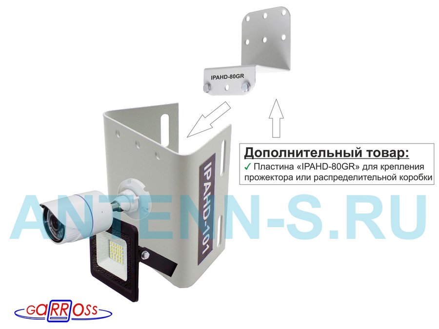 - Кронштейн "IPAHD-STOLB-101S" для 1 камеры и прожектора, крепится при помощи СИП ленты монтажной на квадратный или круглый столб. Подходит для любых камер: HickVision, HiWatch, Dahua, RVI, Орбита и др.