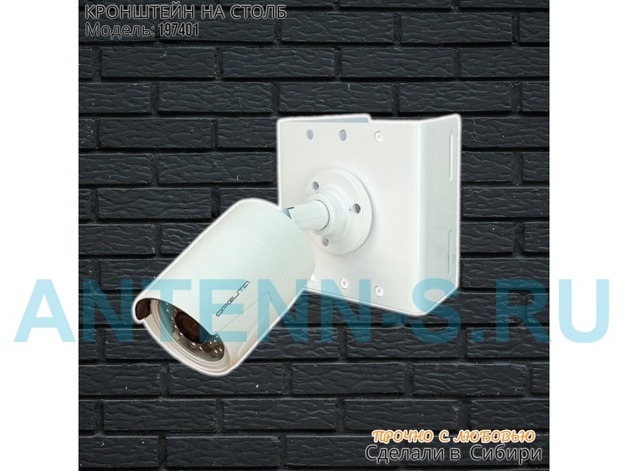 - Кронштейн для одной камеры и прожектора, крепится при помощи СИП ленты монтажной на квадратный или круглый столб. Подходит для любых камер.
