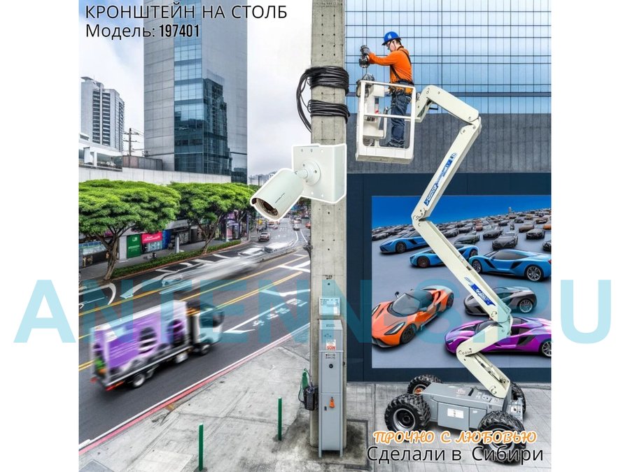 - Кронштейн позволяет быстро зафиксировать камеру и прожектор на столбе, не сверля его.