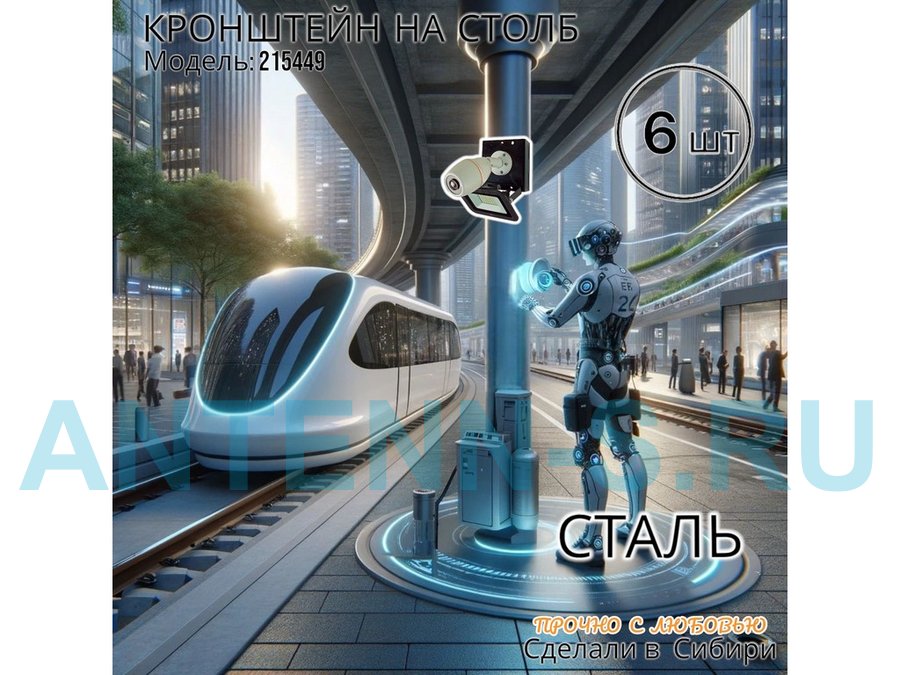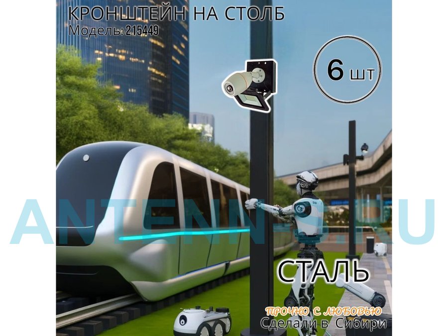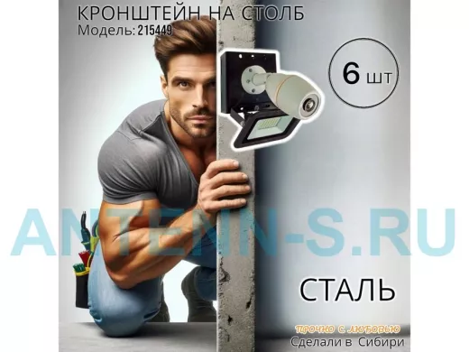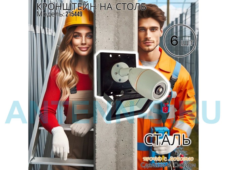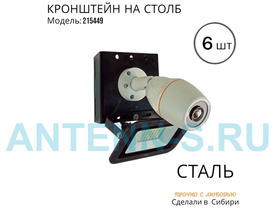 - Кронштейн для 1 камеры и прожектора, крепится при помощи СИП ленты монтажной на квадратный или круглый столб. Подходит для любых камер.