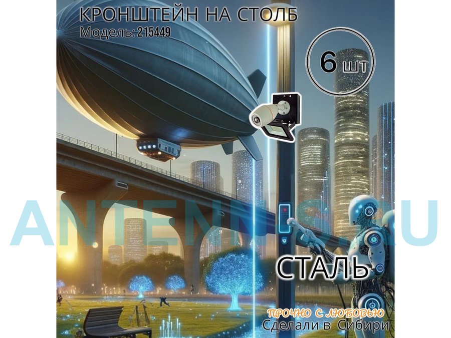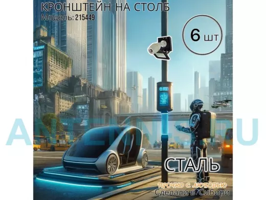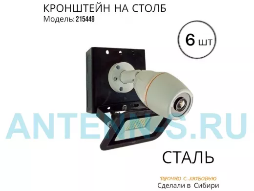 Набор 6 шт. Кронштейн для 1 камеры и прожектора на столб черный "IPAHD-101BK-215449" под хомут