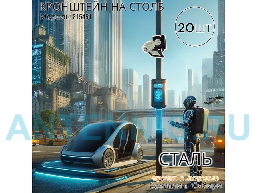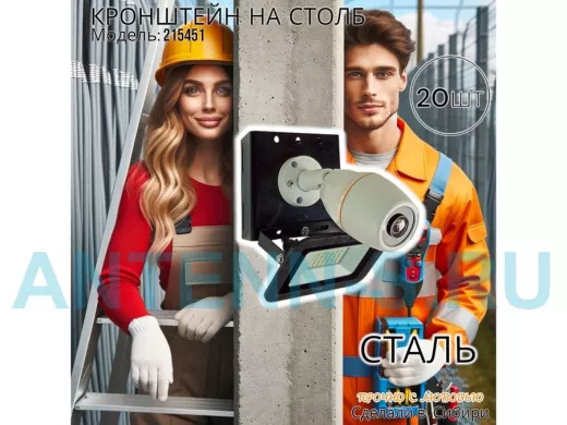Набор 20 шт. Кронштейн для 1 камеры и прожектора на столб черный "IPAHD-101BK-215451" под хомут