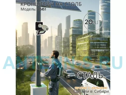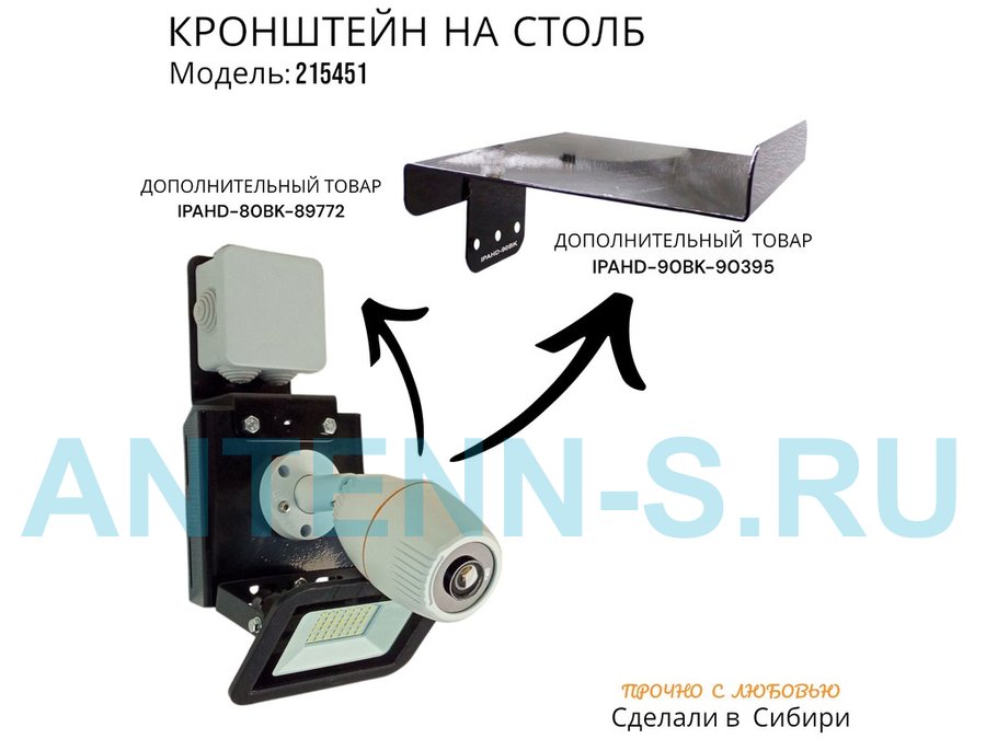- Кронштейн позволяет быстро зафиксировать камеру и прожектор на столбе, не сверля его.