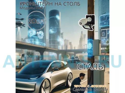 - Кронштейн для 1 камеры и прожектора, крепится при помощи СИП ленты монтажной на квадратный или круглый столб. Подходит для любых камер.