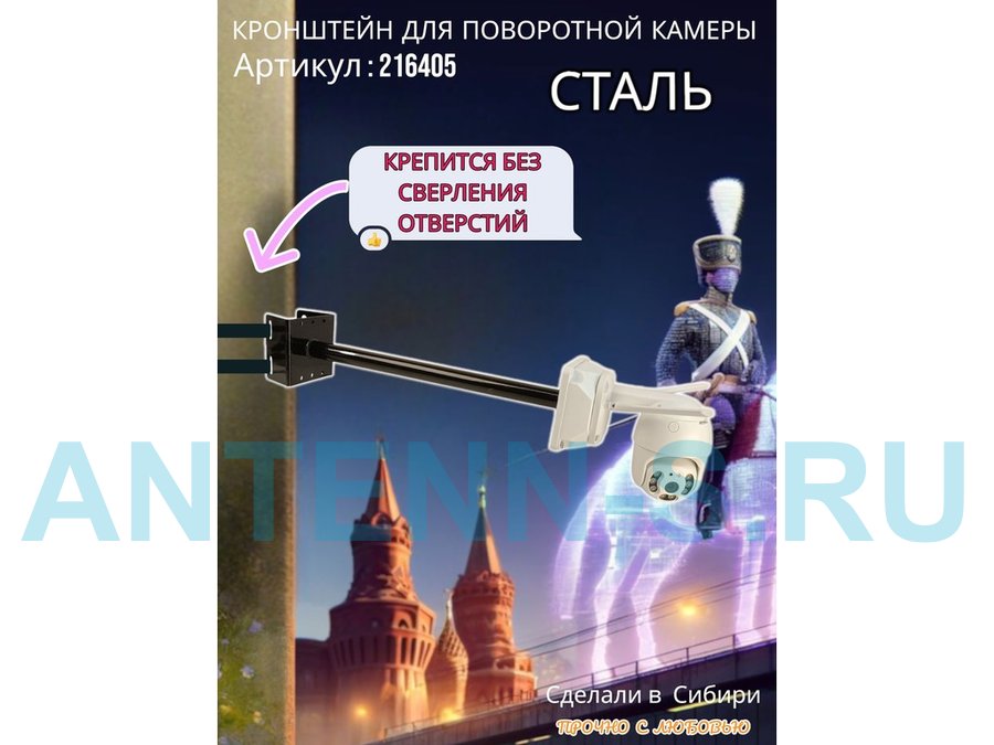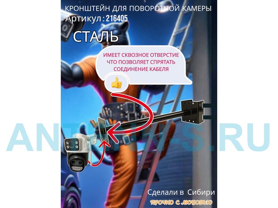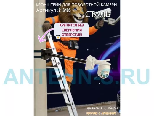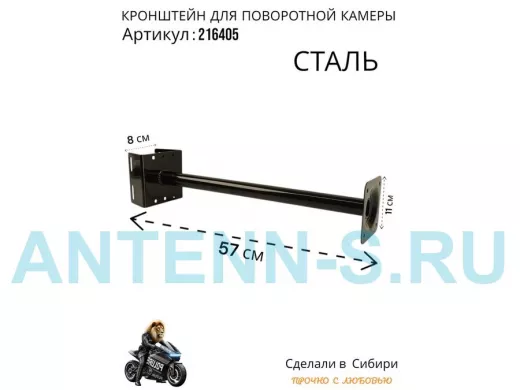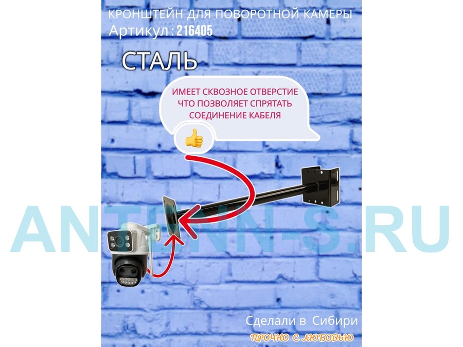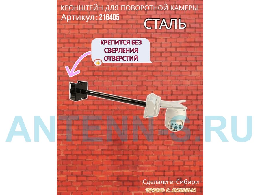 - Стальной кронштейн позволяет вынести камеру от столба на 50 см.