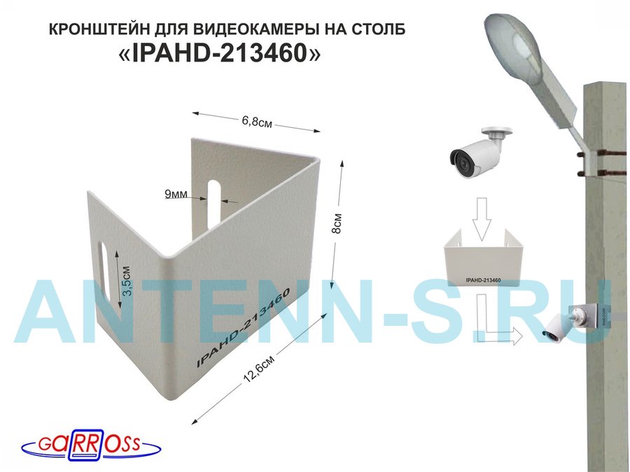 В корзину Купить в 1 клик Кронштейн мини для камеры на столб "IPAHD 213460" серый под СИП-ленту, вылет 0,08м, 75мм