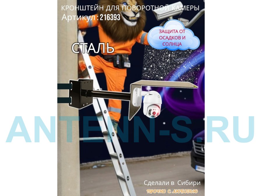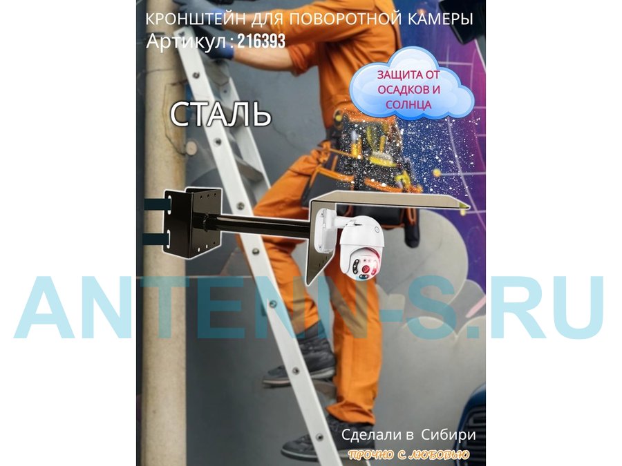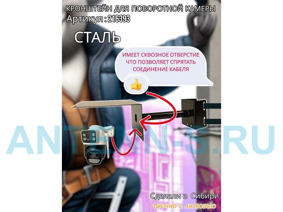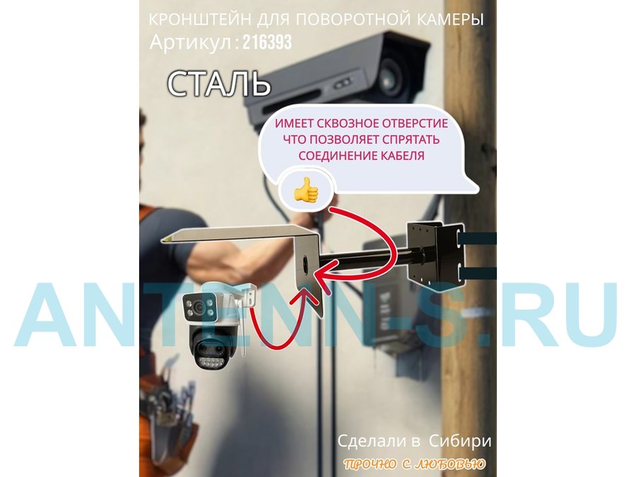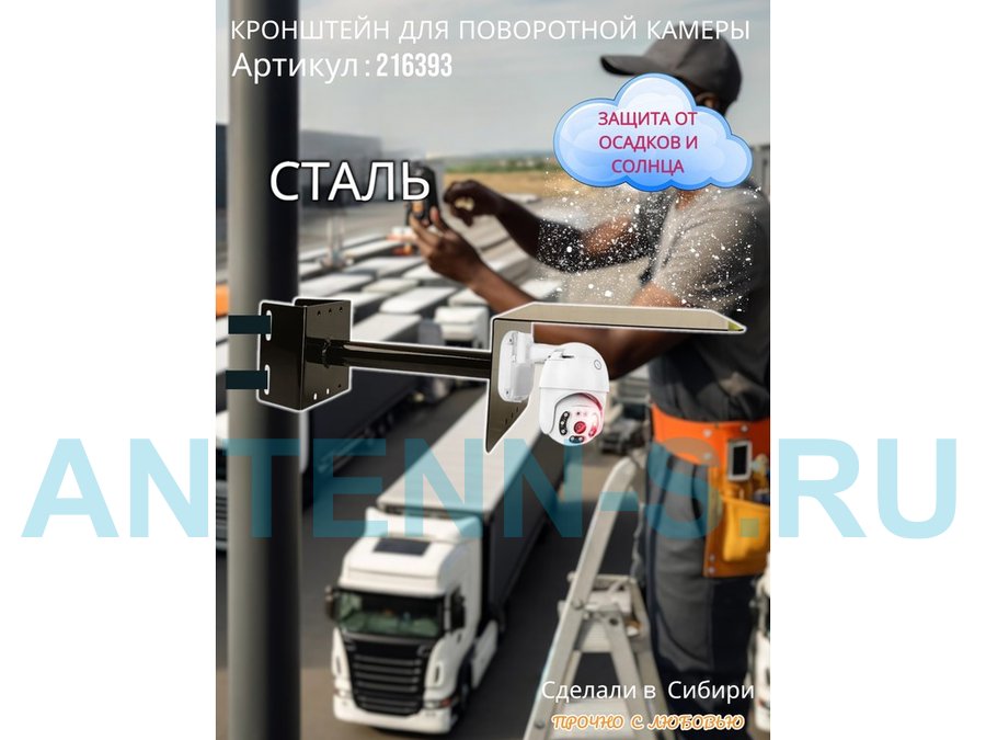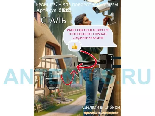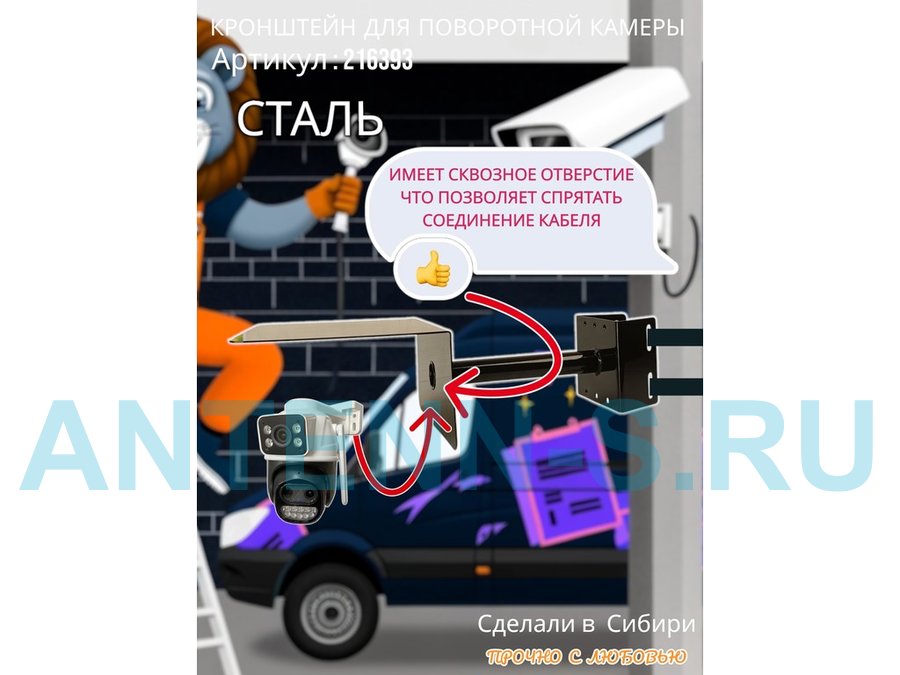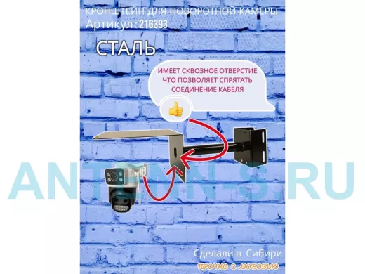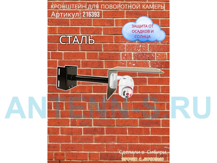 - Стальной кронштейн позволяет вынести камеру от столба на 25 см.