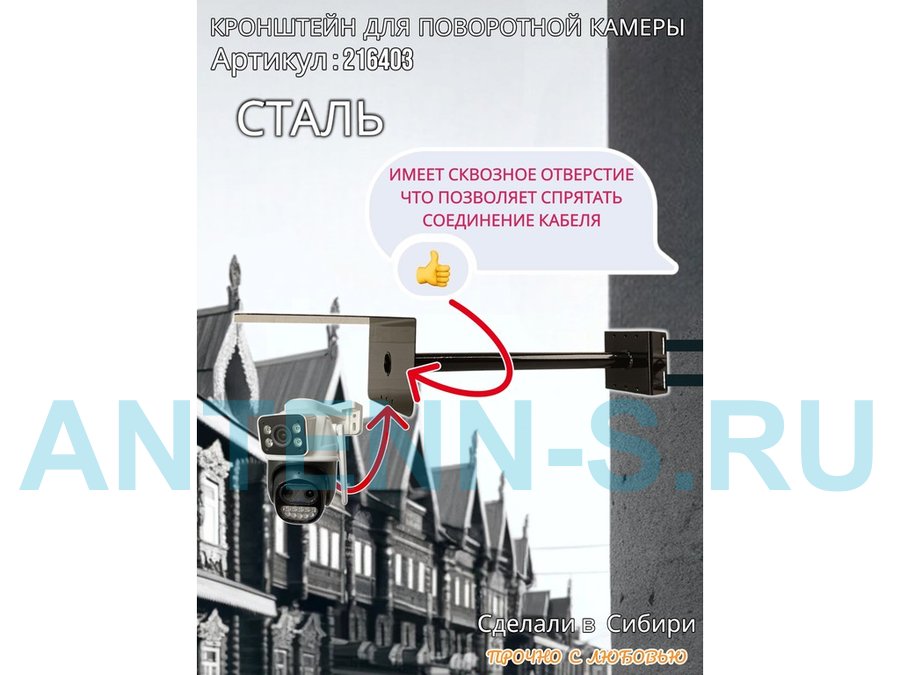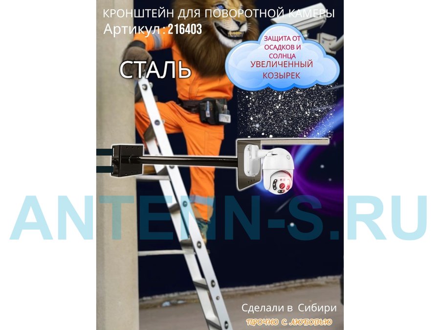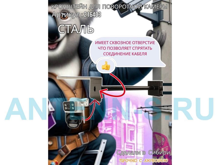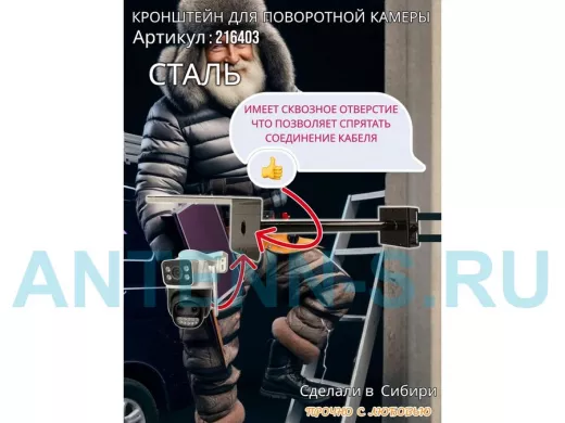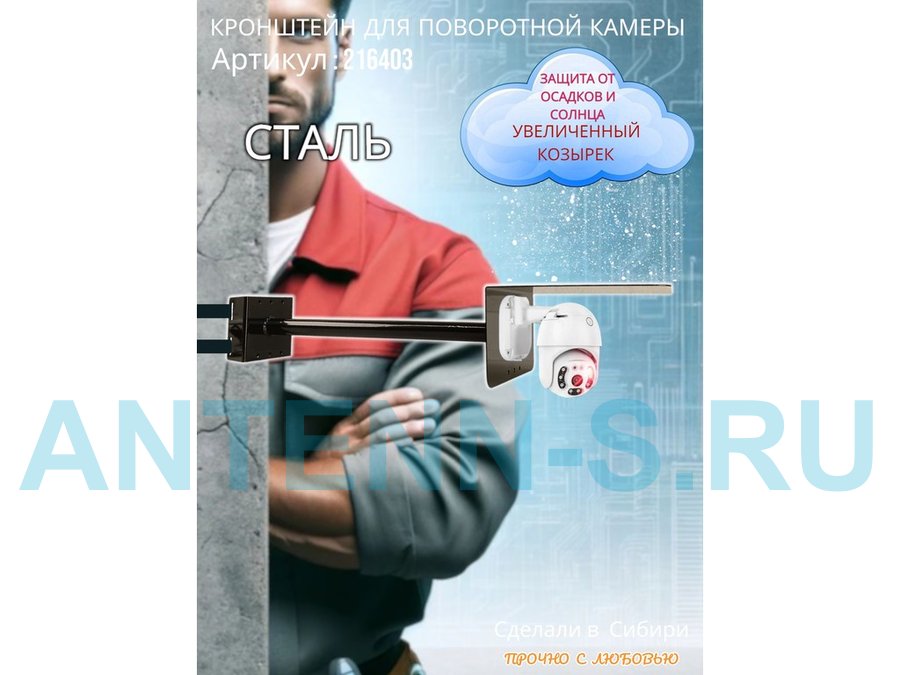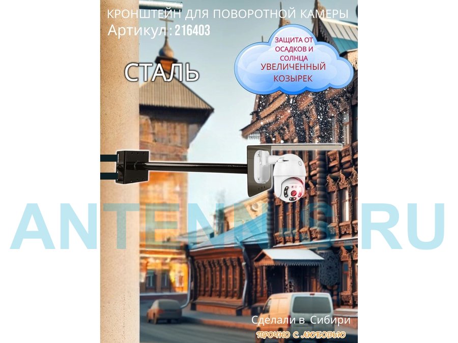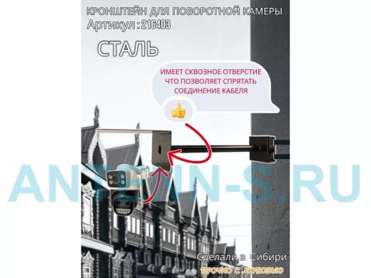 - Стальной кронштейн позволяет вынести камеру от столба на 50 см.