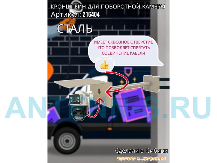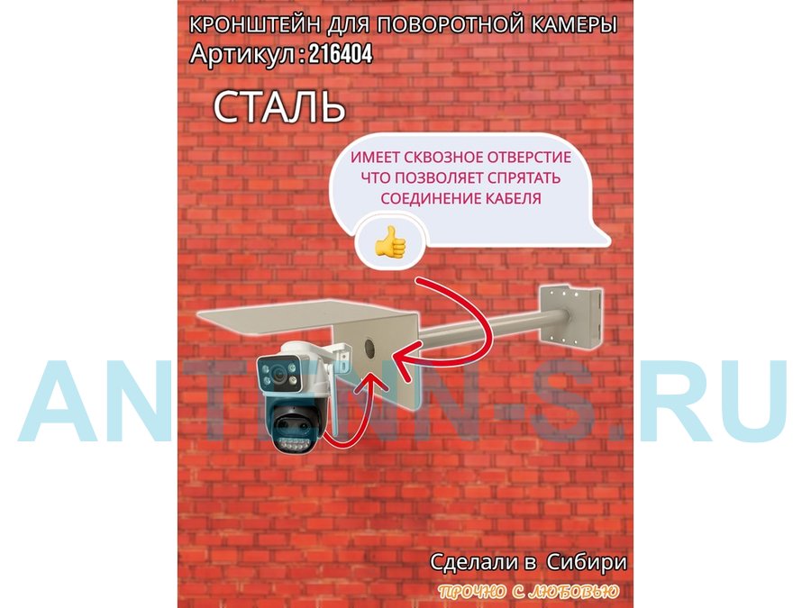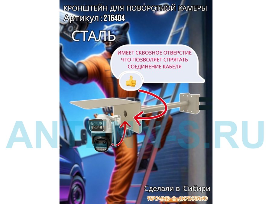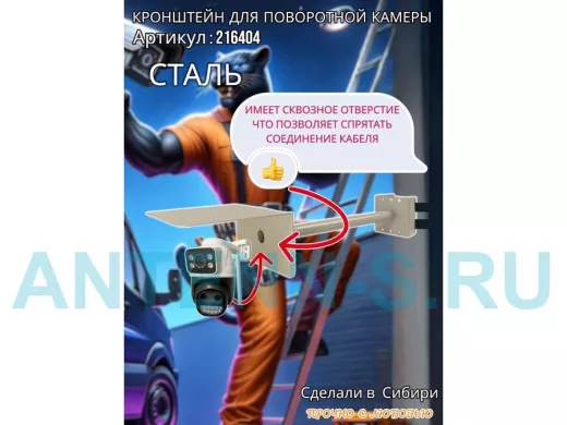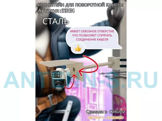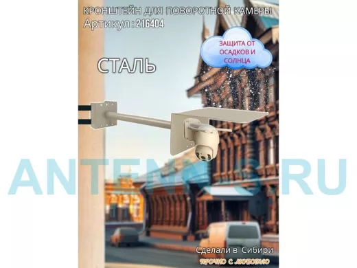 - Стальной кронштейн позволяет вынести камеру от столба на 50 см.