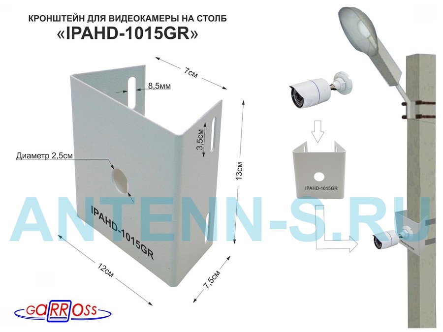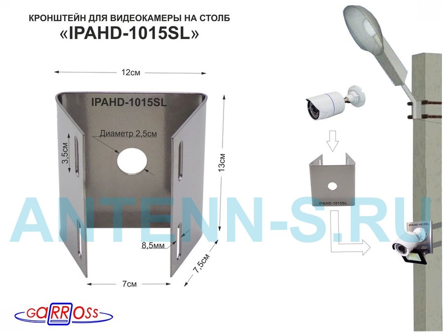 . Для видеокамер. Кронштейны на столб одноместные "IPAHD-1015". С отверстием 25мм.