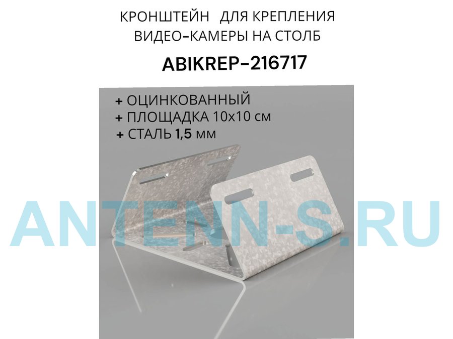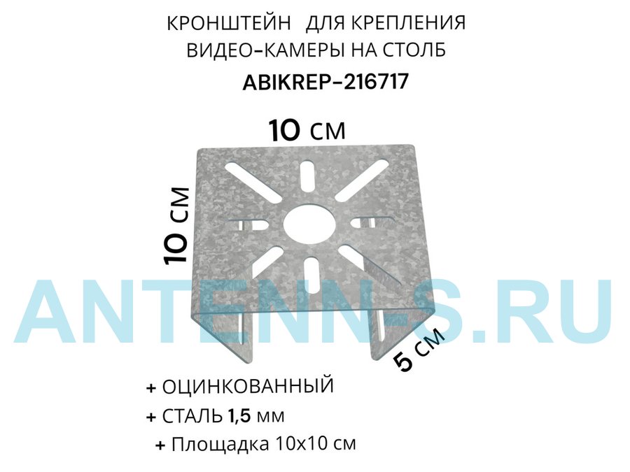 Кронштейн оцинкованный для камеры на столб "ABIKREP-216717" 100х104мм, сталь, под хомуты, вылет 5см