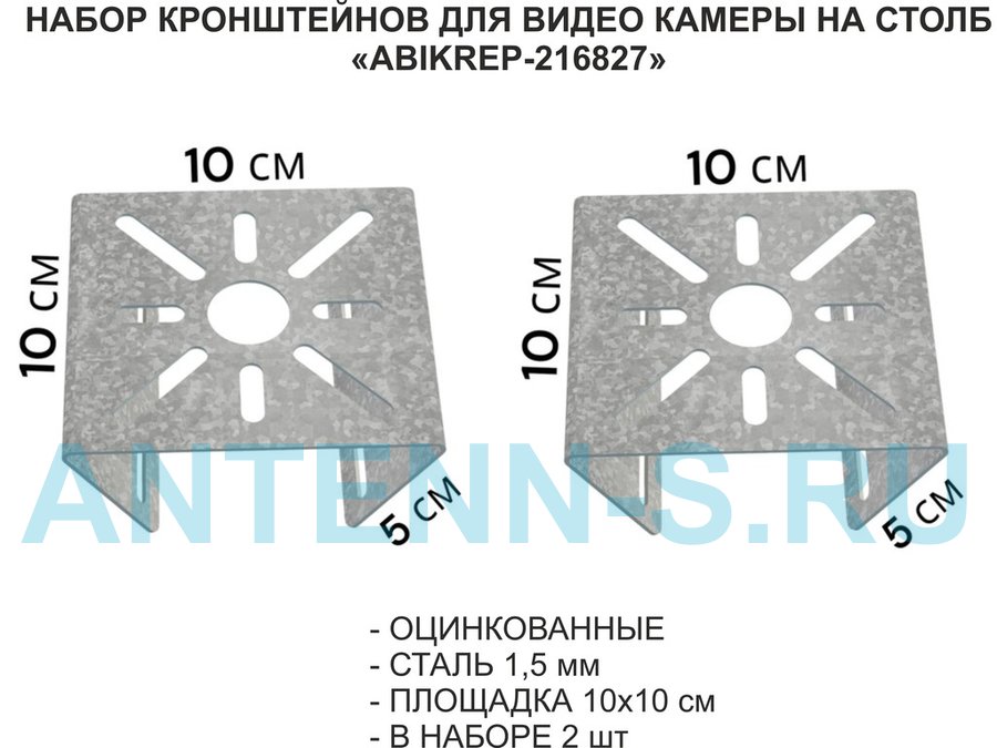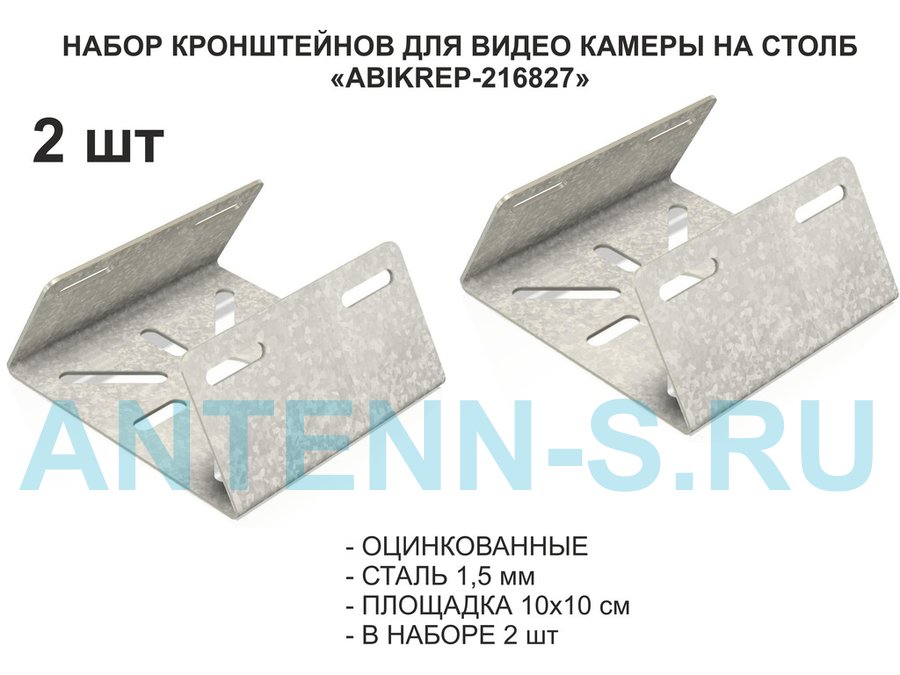 Набор 2 шт. Кронштейн оцинкованный для камеры на столб "ABIKREP-216827" 100х104мм, сталь,под хомуты