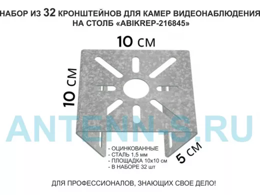 Набор 32 шт. Кронштейн оцинкованный для камеры на столб "ABIKREP-216845" 100х104мм, сталь,под хомуты