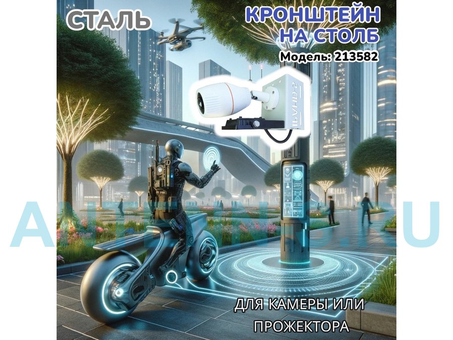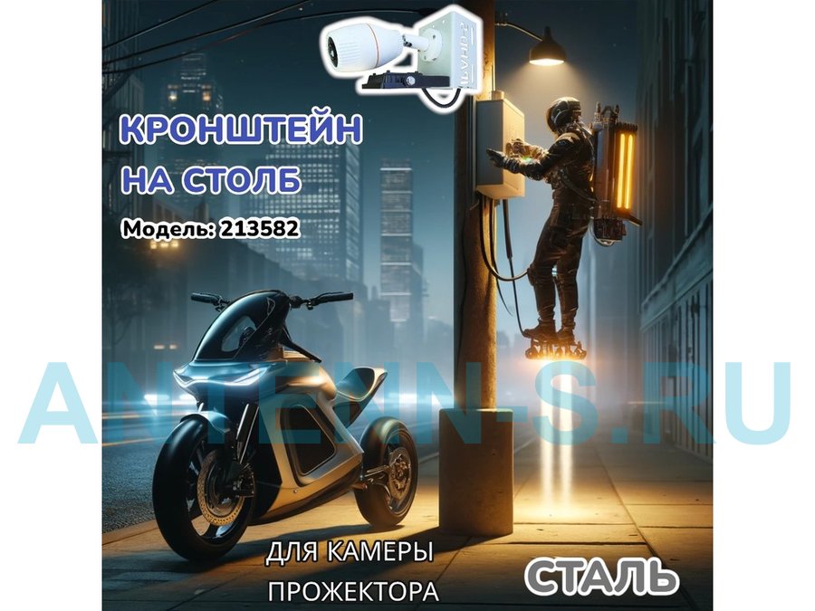 - Кронштейн позволяет быстро зафиксировать камеру и прожектор на столбе, не сверля его.